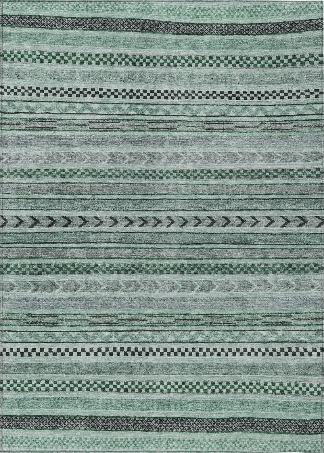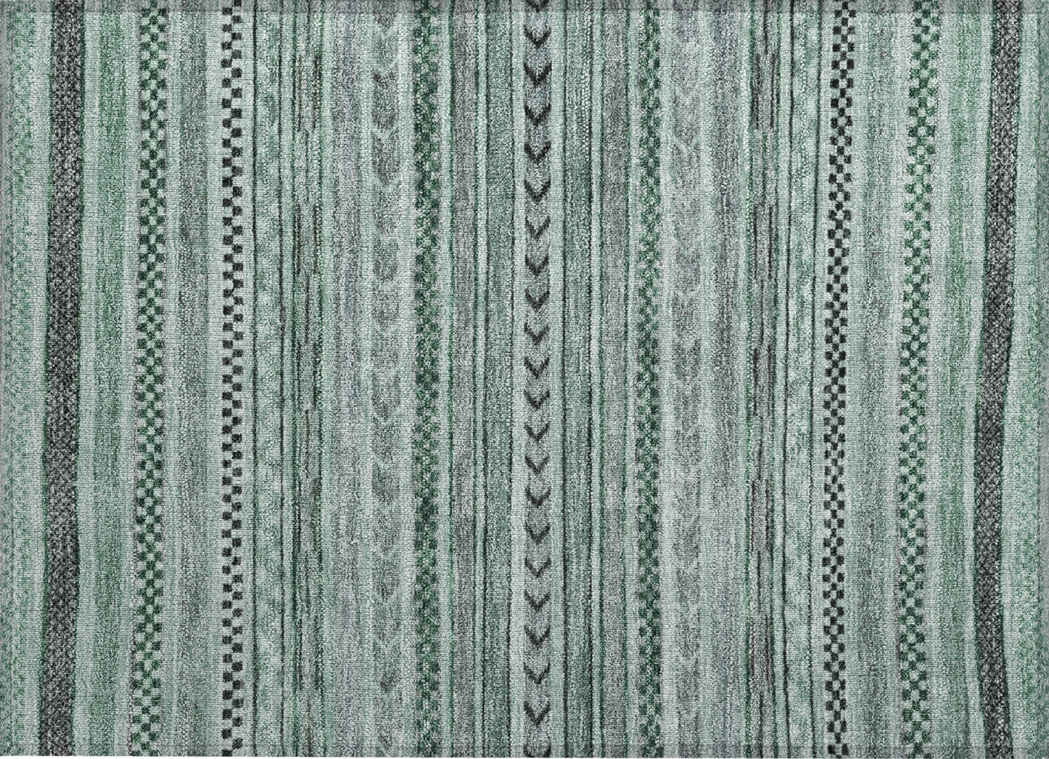 The small stripes featuring various motifs in horizontal patterns give this transitional rug a textured and layered look that's both stylish and versatile. The stripe pattern adds a subtle yet dynamic design element that complements a wide range of decor styles. UV stabilized for lasting beauty, this rug is suitable for both indoor and outdoor use. Its ultra-thin construction ensures a smooth fit under furniture, and it's conveniently machine-washable. Designed for family and pet-friendly environments, this rug combines practicality with aesthetic appeal.