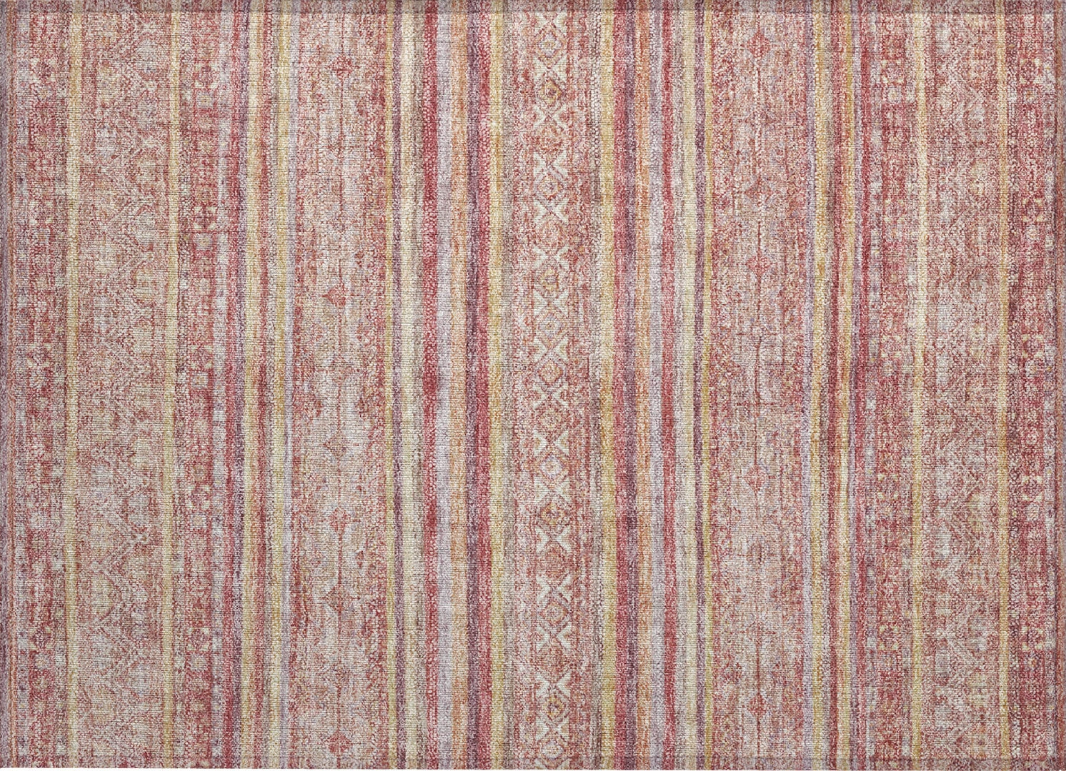 With a transitional design, this rug features multiple stripes and delicate motifs, providing a visually appealing and elegant pattern for your home. The combination of stripes with intricate details adds a touch of sophistication that complements various decor styles. UV stabilized for long-lasting use, this rug is suitable for indoor and outdoor settings, preserving its stylish look over time. The ultra-thin construction ensures it fits effortlessly under furniture, and it's machine-washable for convenient upkeep. Ideal for family and pet-friendly spaces, this rug merges beauty with functionality.