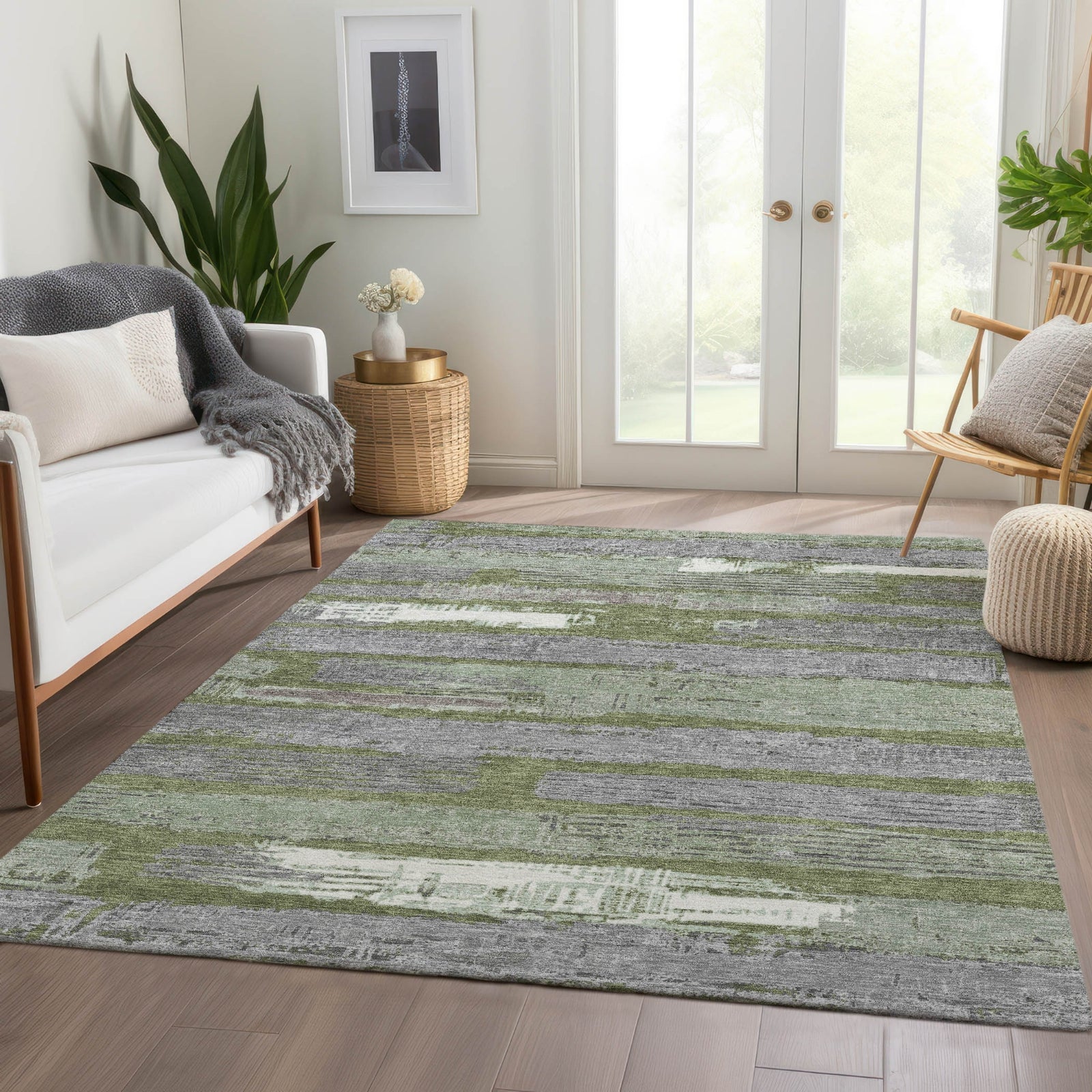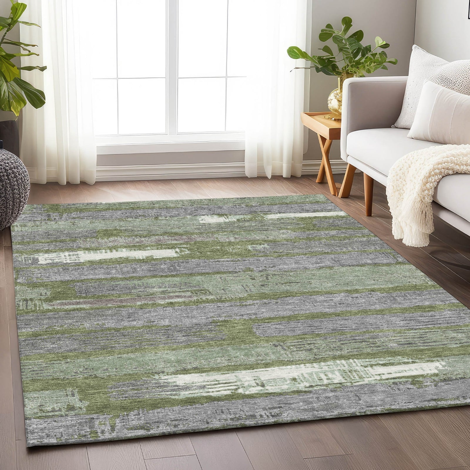 Piper Looms Chantille Stripes ACN1665 Olive Machine Washable Area Rug
