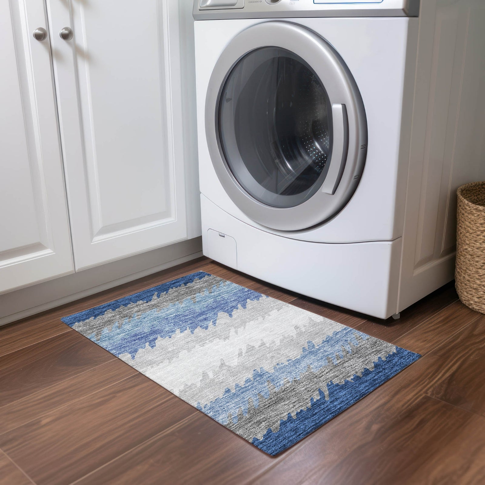 - Machine Washable. Larger rug sizes may not fit into a residential washing machine. They may be washed in a commercial size washing machine or hosed-off outside with mild soap and water. Air-dry, do not machine dry.