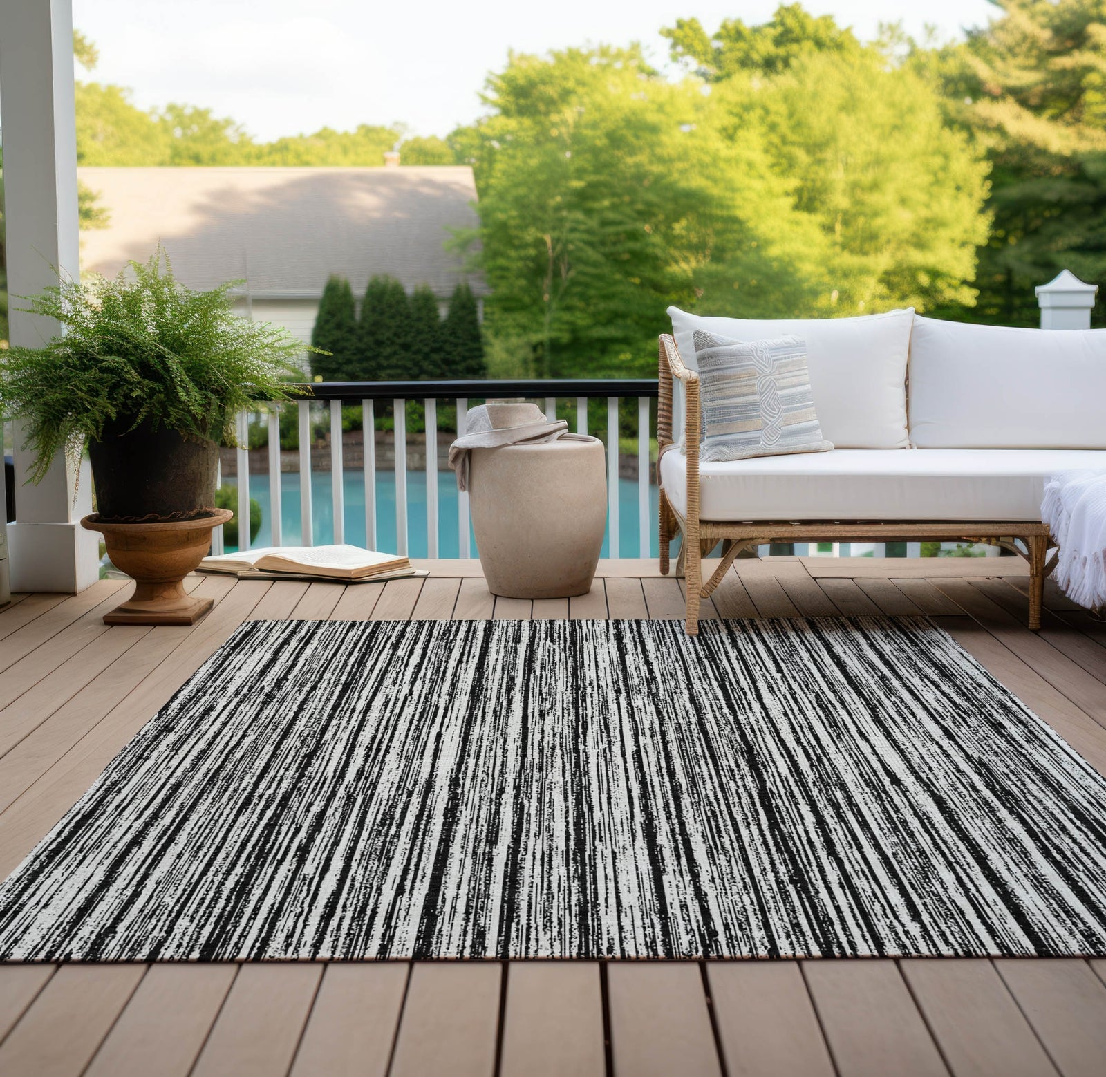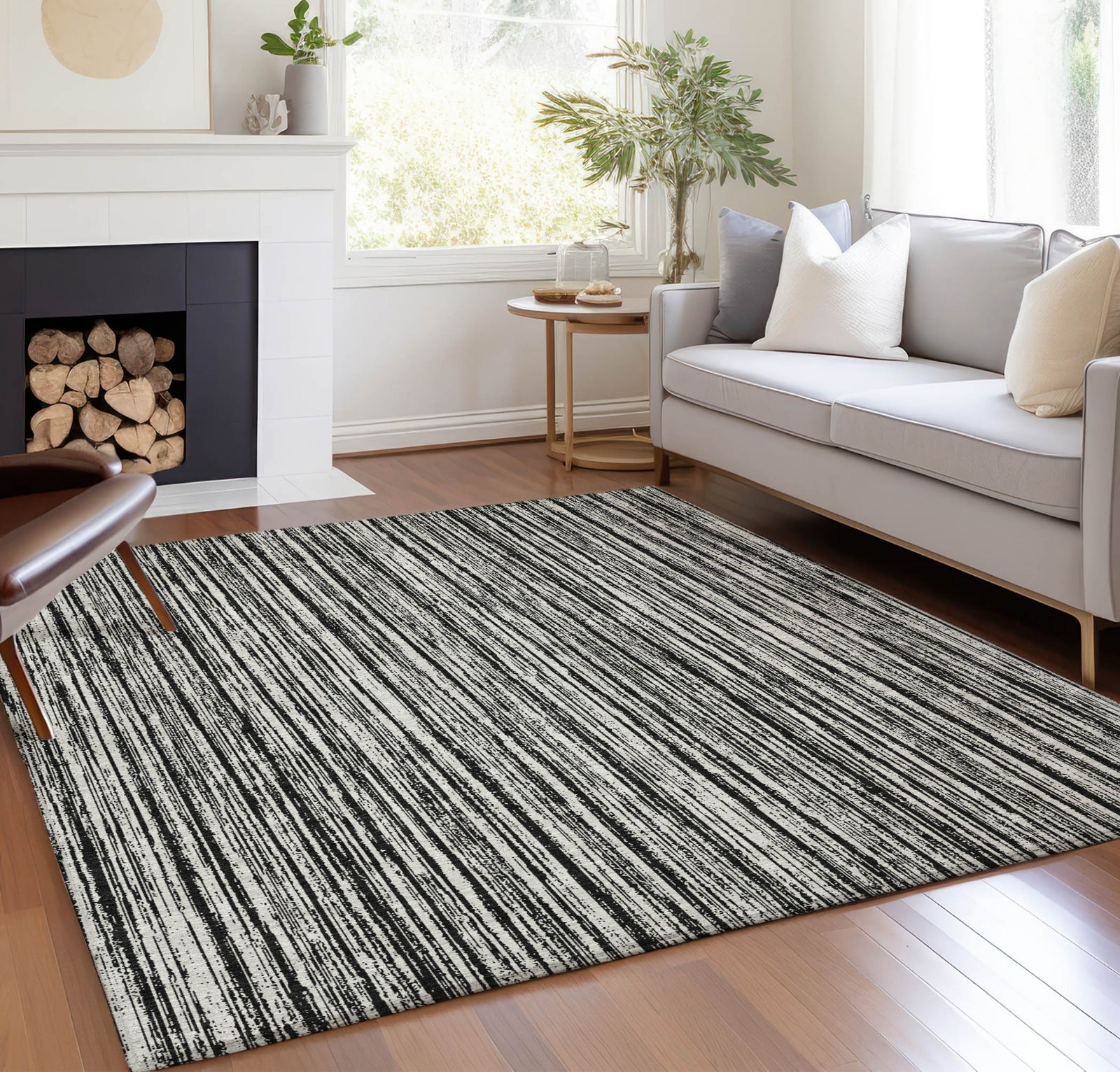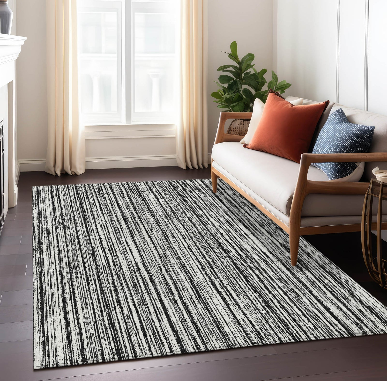 Piper Looms Chantille Stripes ACN760 Black Machine Washable Area Rug