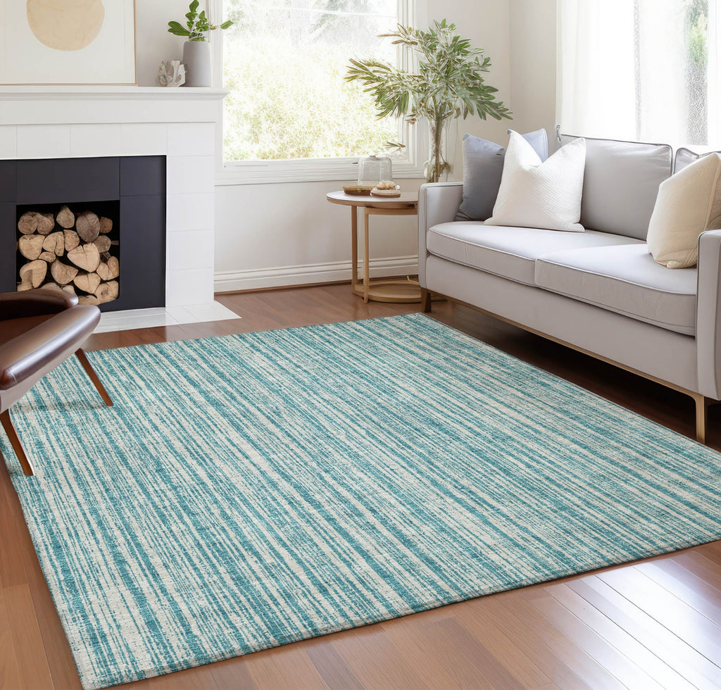 Piper Looms Chantille Stripes ACN760 Teal Machine Washable Area Rug