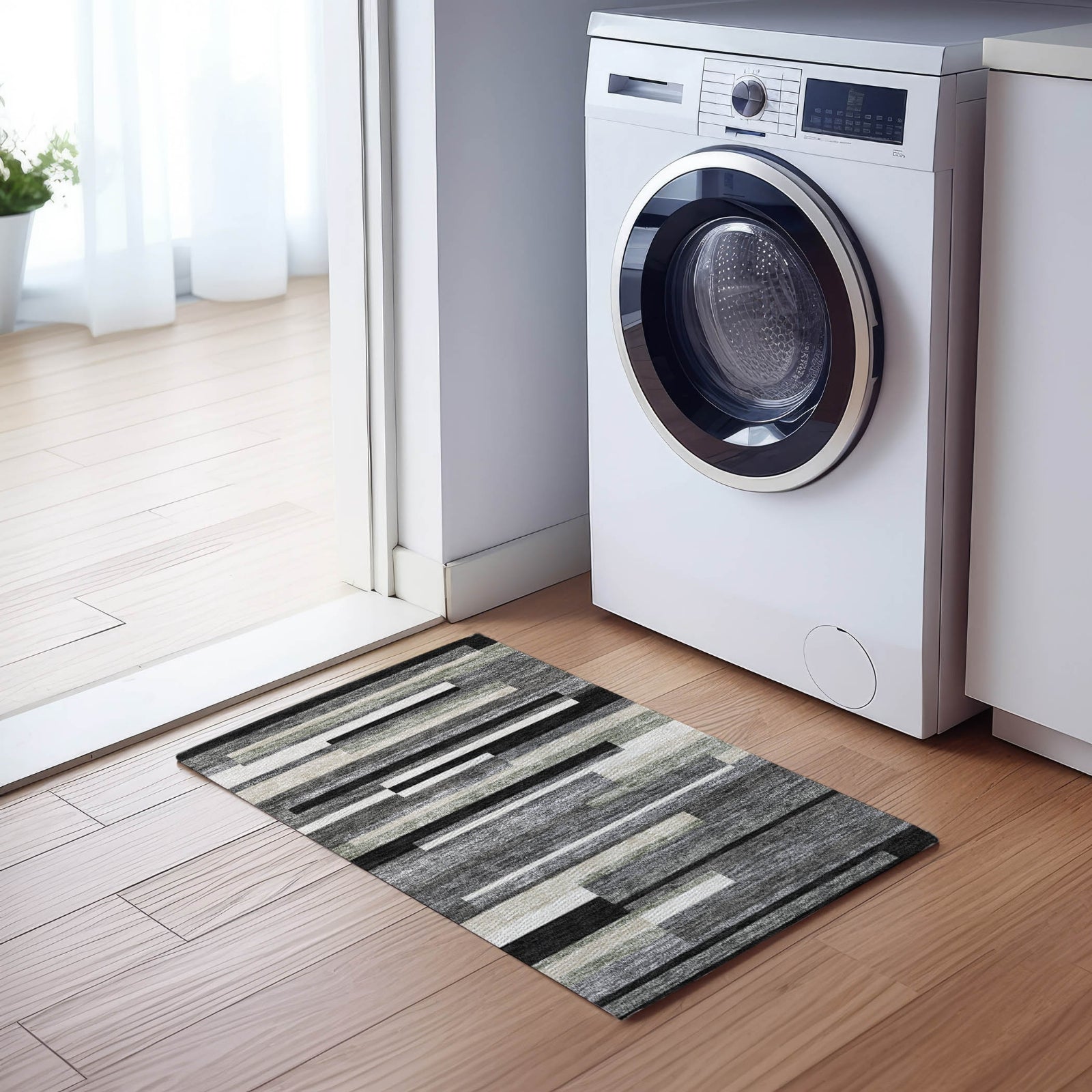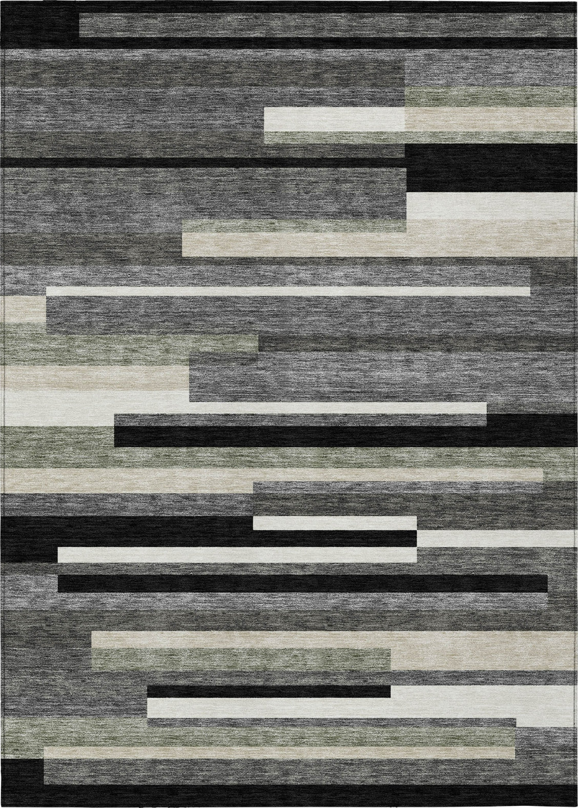 Piper Looms Chantille Stripes ACN766 Black Machine Washable Area Rug