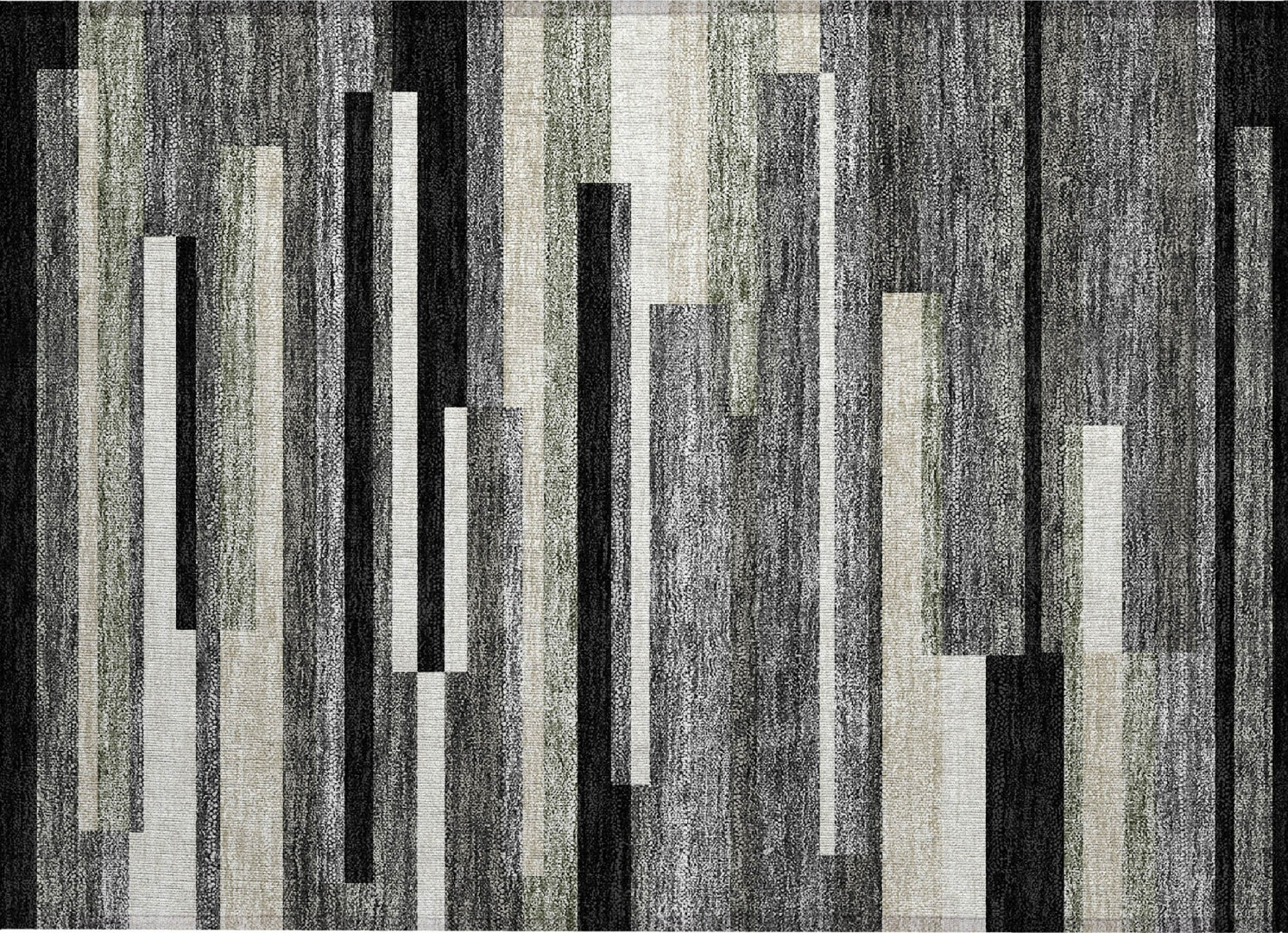 On this rug, slender bars come together to form a subtle yet impactful horizontal stripe pattern, enhancing its transitional appeal. The stripes lend a contemporary touch to the space, making it more dynamic and engaging. Additionally, the rug is UV stabilized, ultra-thin for modern aesthetics, machine-washable for easy care, and suitable for both pets and families.