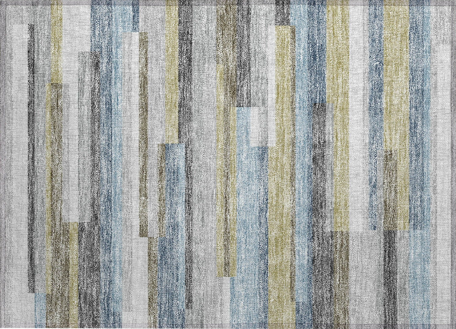 On this rug, slender bars come together to form a subtle yet impactful horizontal stripe pattern, enhancing its transitional appeal. The stripes lend a contemporary touch to the space, making it more dynamic and engaging. Additionally, the rug is UV stabilized, ultra-thin for modern aesthetics, machine-washable for easy care, and suitable for both pets and families.