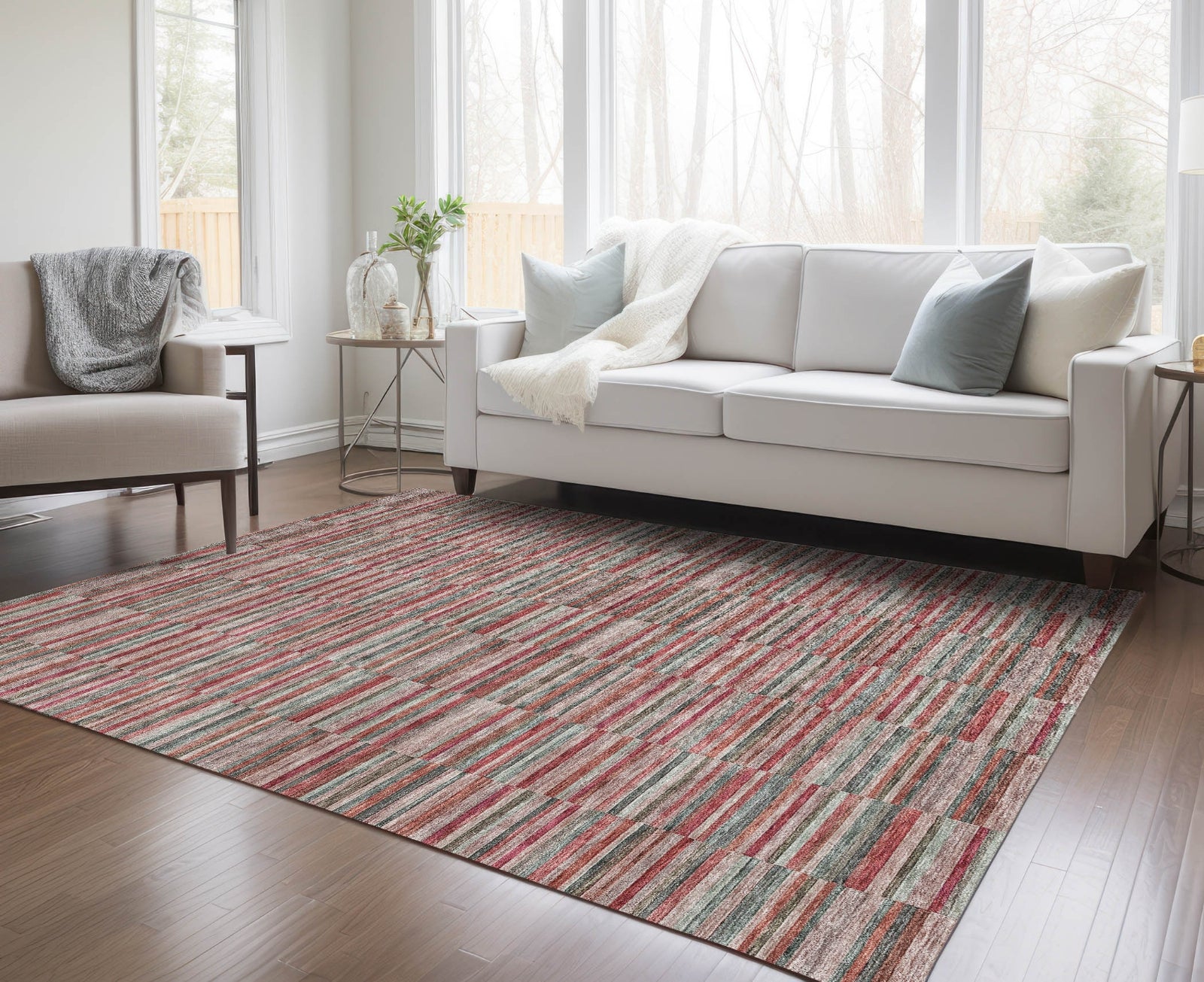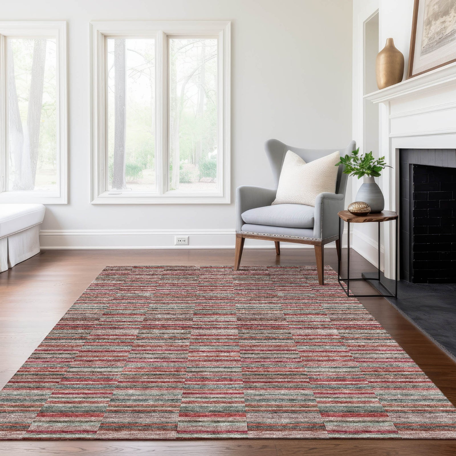 Piper Looms Chantille Stripes ACN816 Red Machine Washable Area Rug