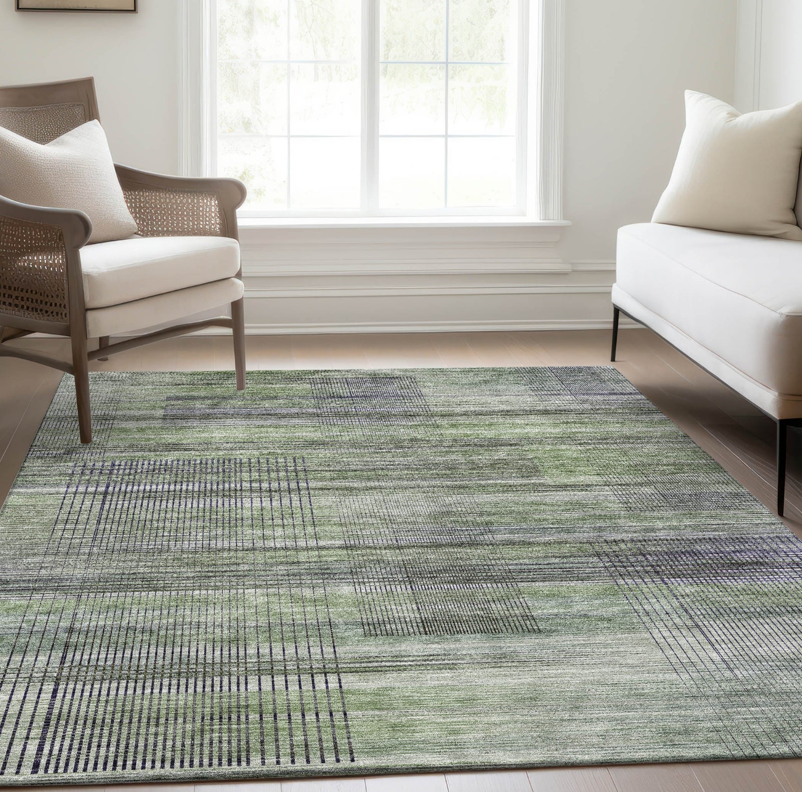 Piper Looms Chantille Stripes ACN819 Aloe Machine Washable Area Rug