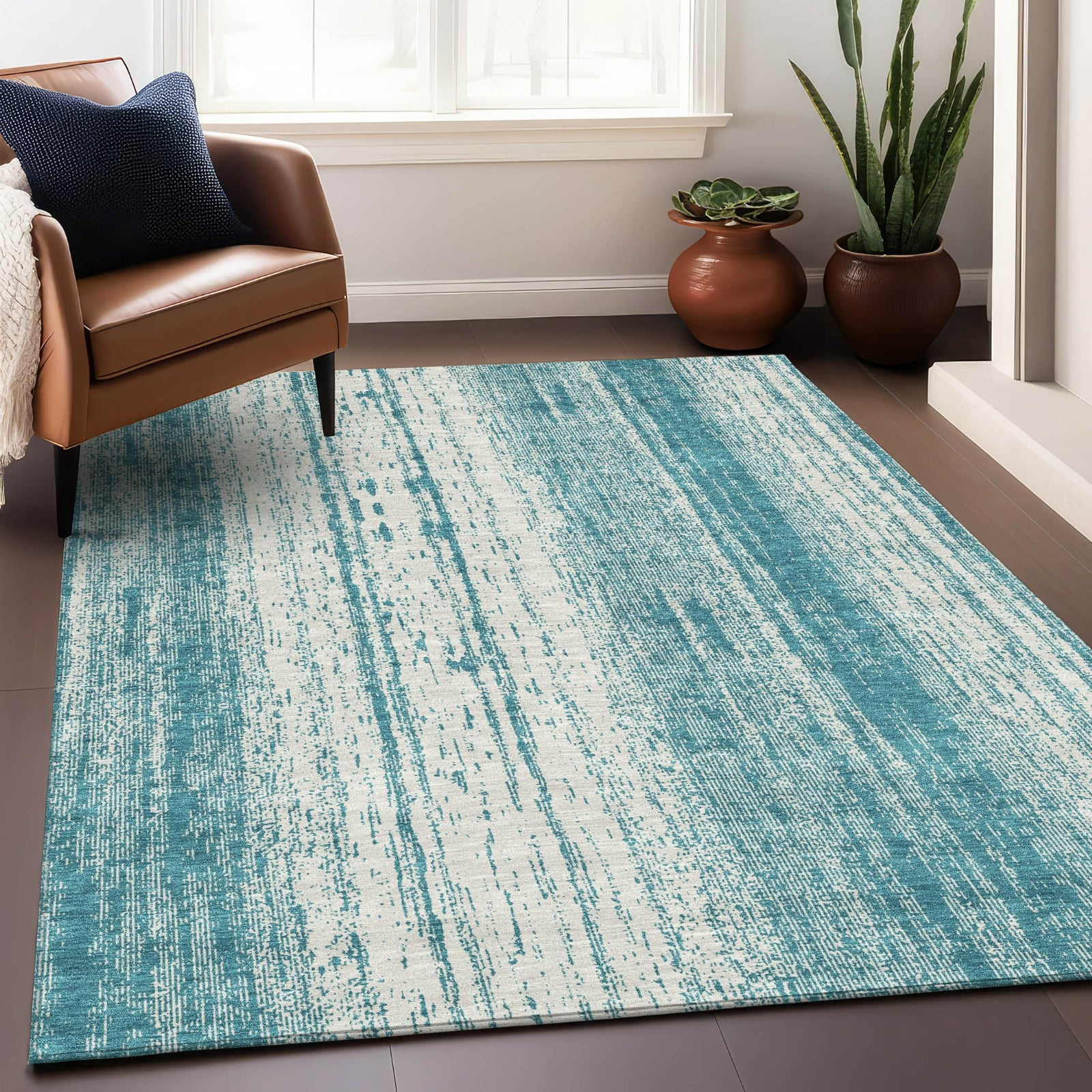 Piper Looms Chantille Stripes ACN861 Teal Machine Washable Area Rug