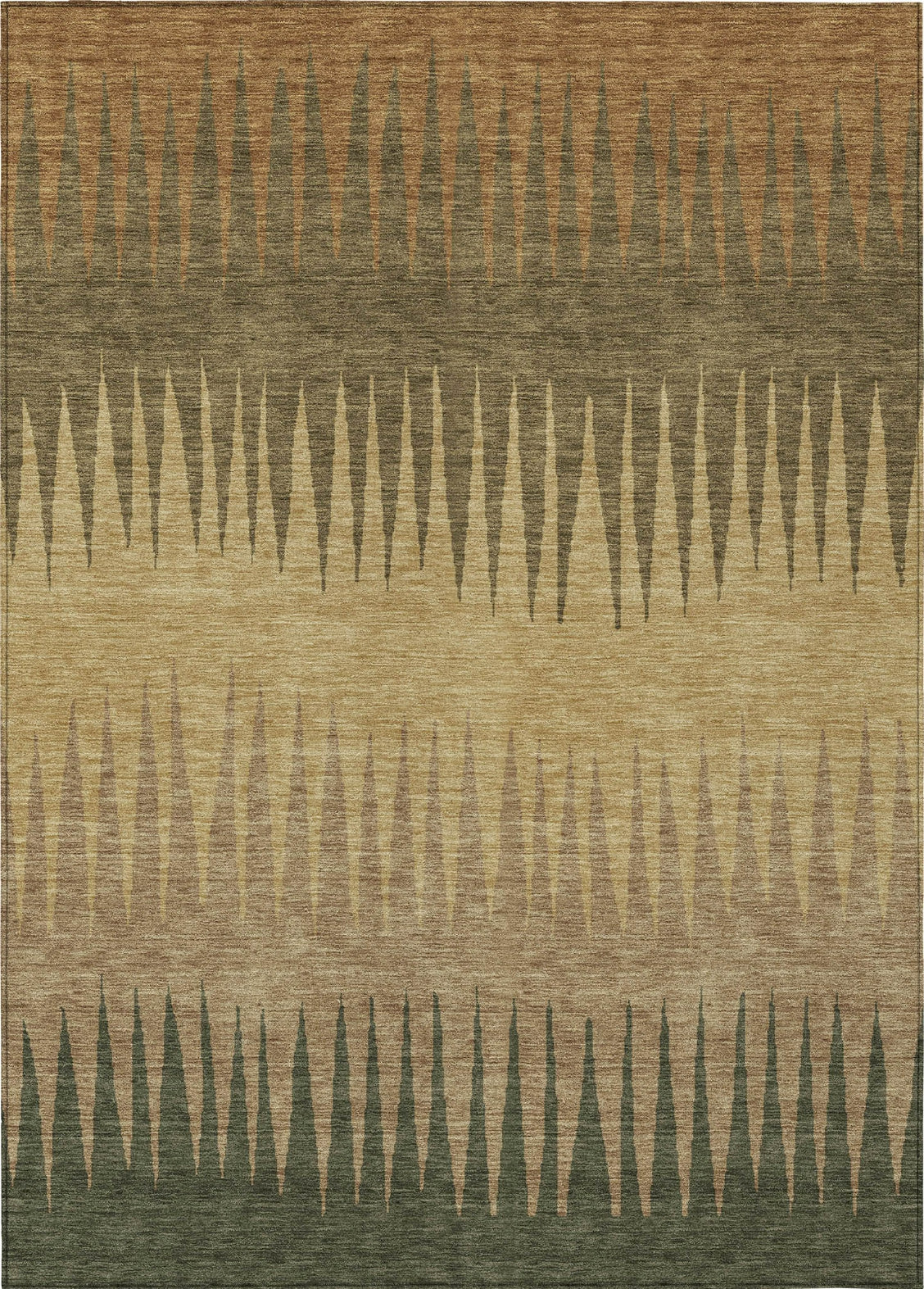 Discover the allure of our area rug, where large zig-zag lines weave a captivating flame stitch pattern, perfectly complemented by transitional stripes. Crafted to excel in both indoor and outdoor environments, thanks to its UV-stabilized material, this rug offers unparalleled flexibility. Its ultra-thin profile allows for seamless placement, and the fact that it's machine-washable makes it a favorite among families and pet owners. Elevate your home with this fusion of fashion and function.