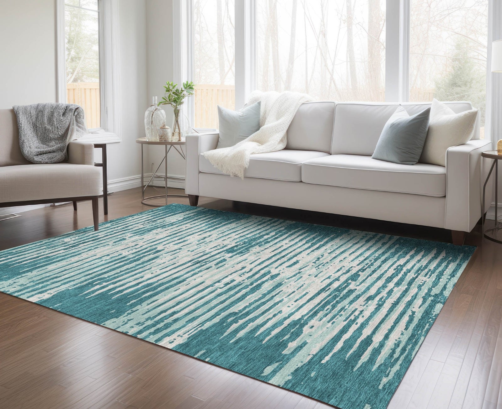 Piper Looms Chantille Stripes ACN888 Teal Machine Washable Area Rug