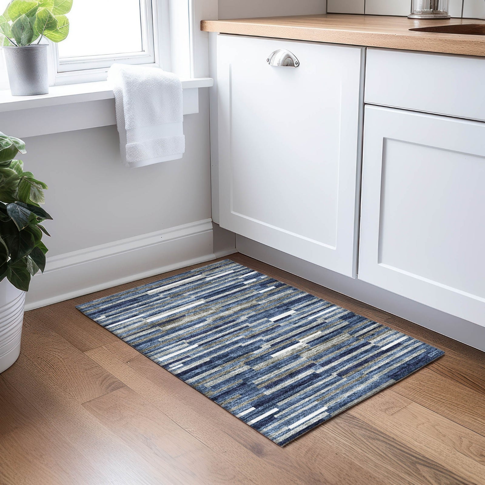 Piper Looms Chantille Stripes ACN894 Navy Machine Washable Area Rug