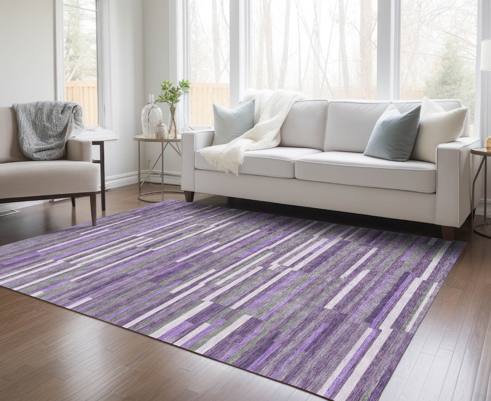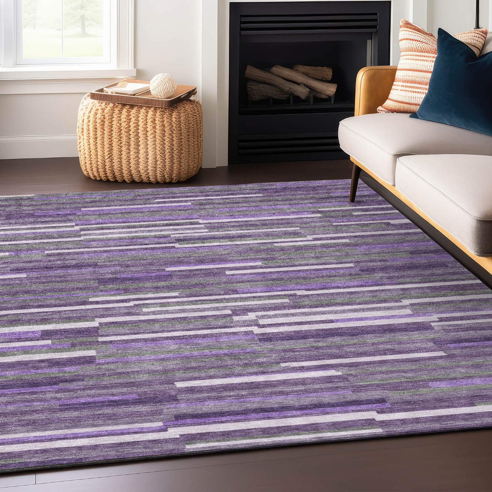 Piper Looms Chantille Stripes ACN894 Purple Machine Washable Area Rug