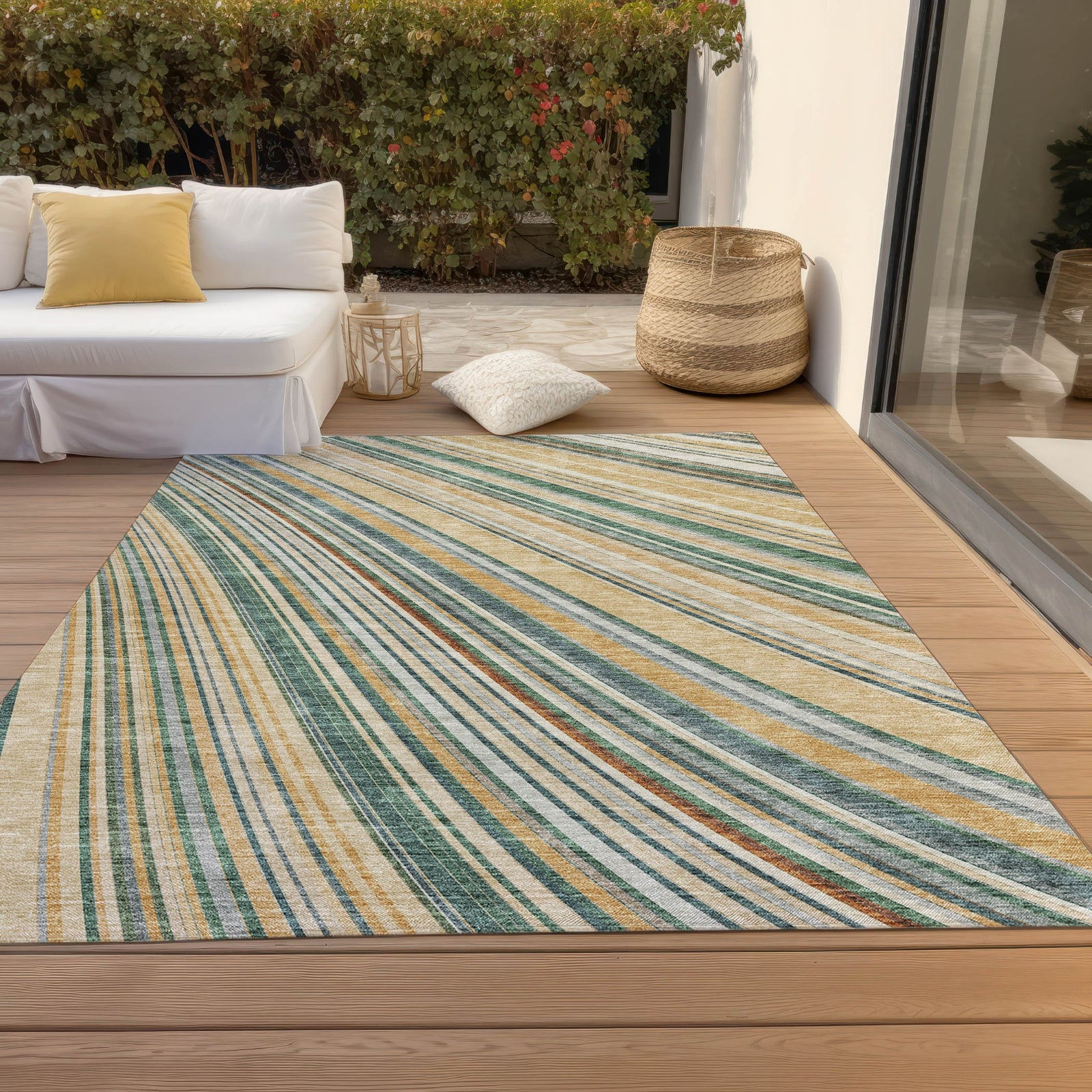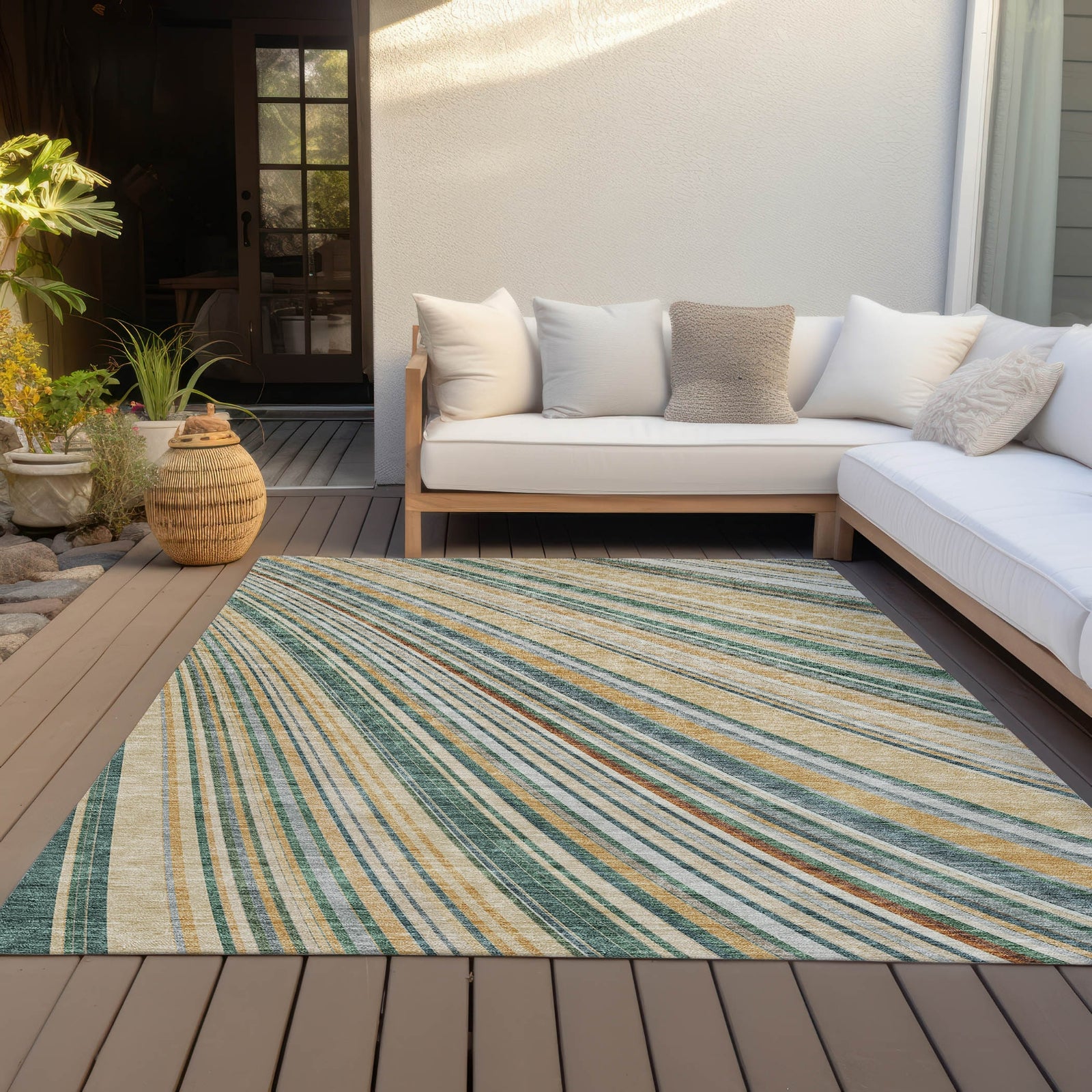 The artful curvature of thin stripes on our area rug strikes a perfect balance between transitional styling and contemporary design. With the added benefits of UV stabilization, ultra-thin architecture, and machine-washable convenience, this rug is designed to harmonize with the bustling rhythm of a dynamic family home.