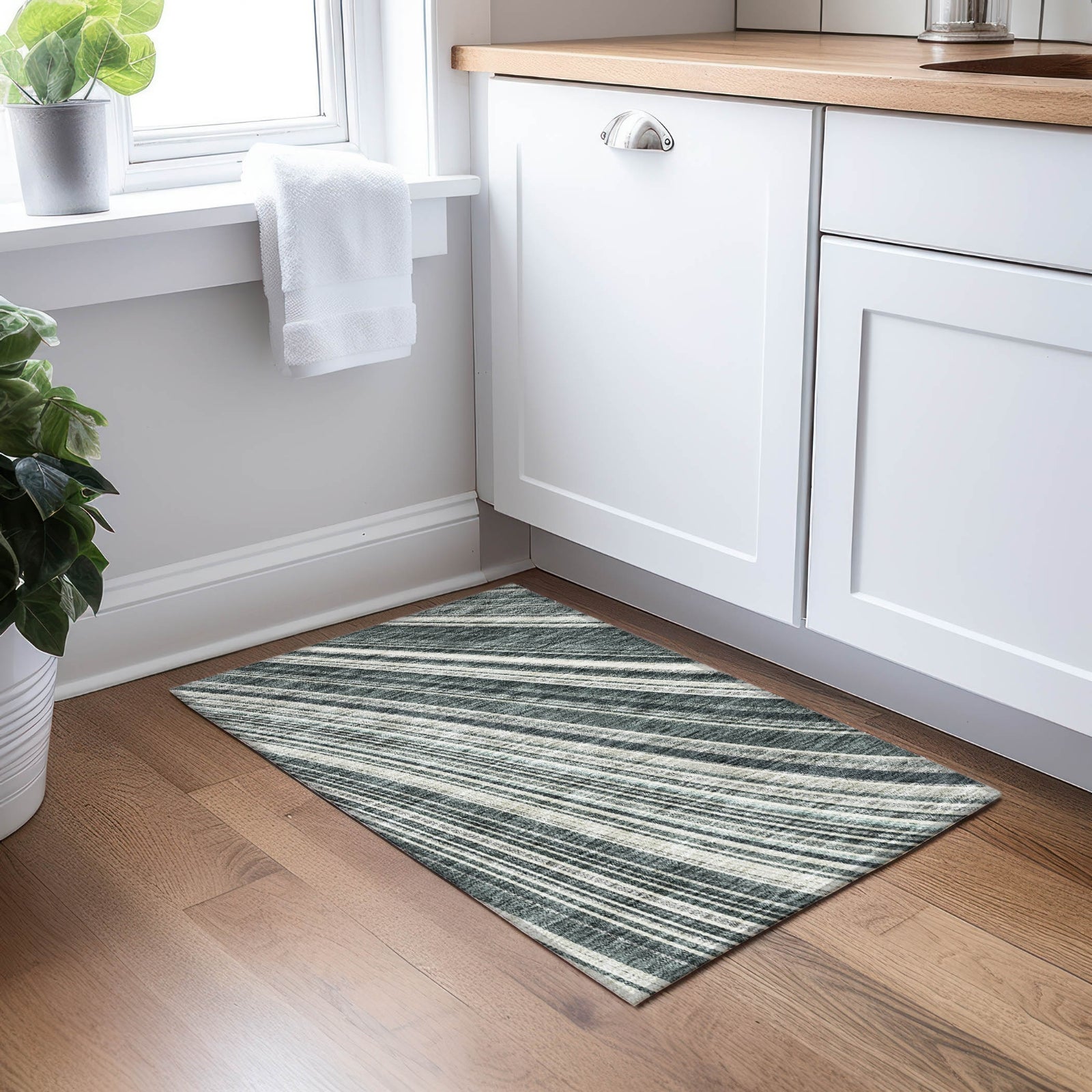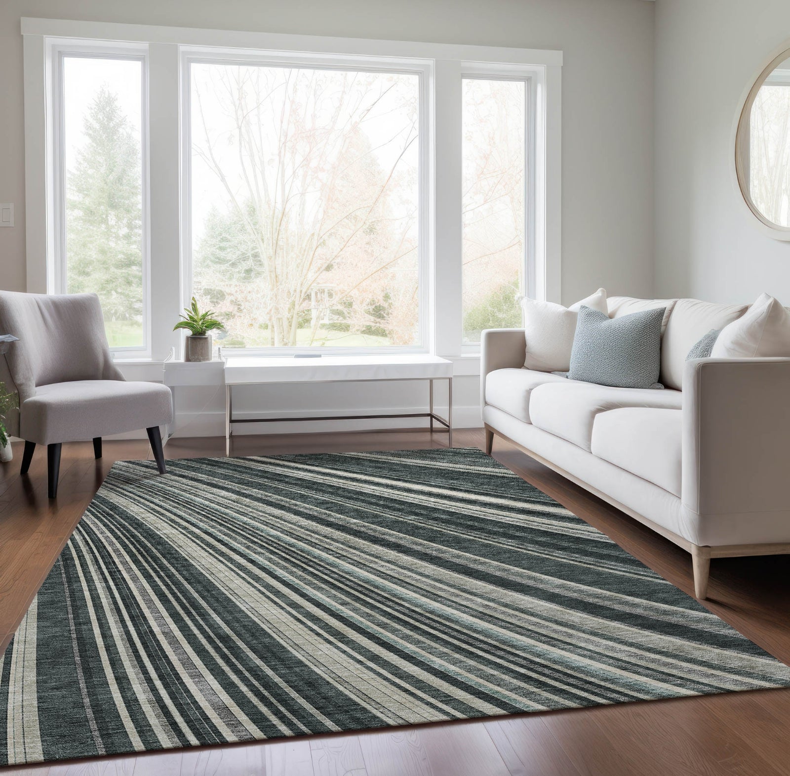 Piper Looms Chantille Stripes ACN981 Black Machine Washable Area Rug