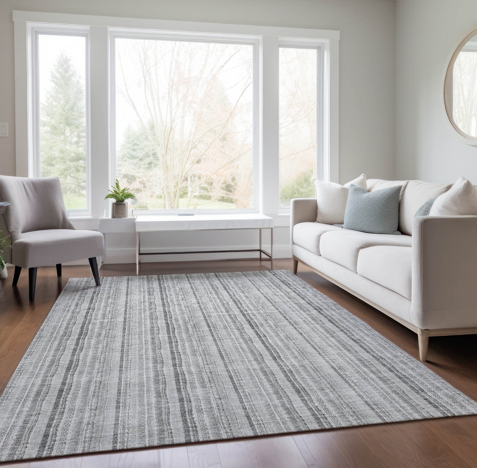 Piper Looms Chantille Stripes ACN982 Silver Machine Washable Area Rug