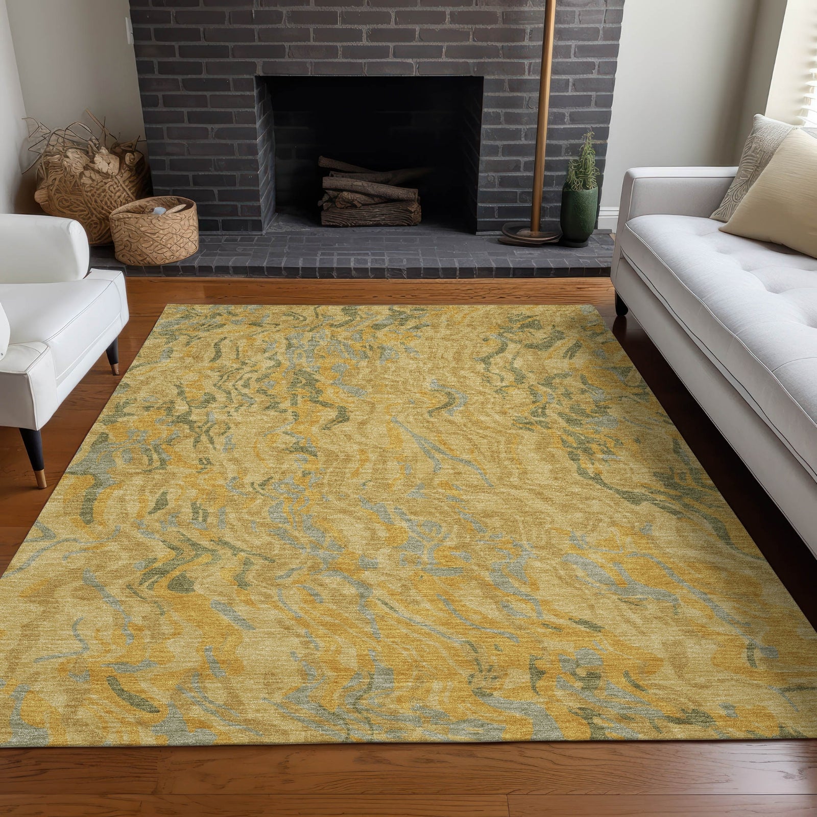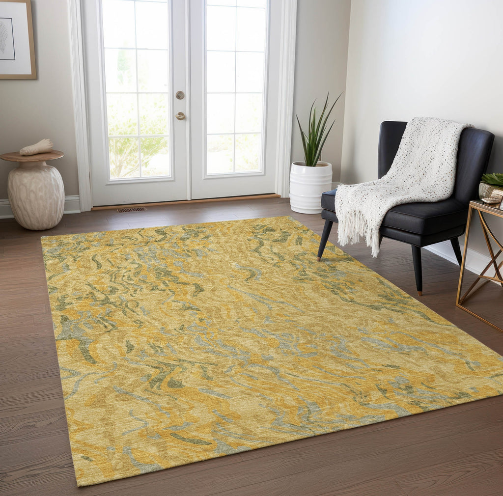 Piper Looms Chantille Swirls ACN1038 Gold Machine Washable Area Rug