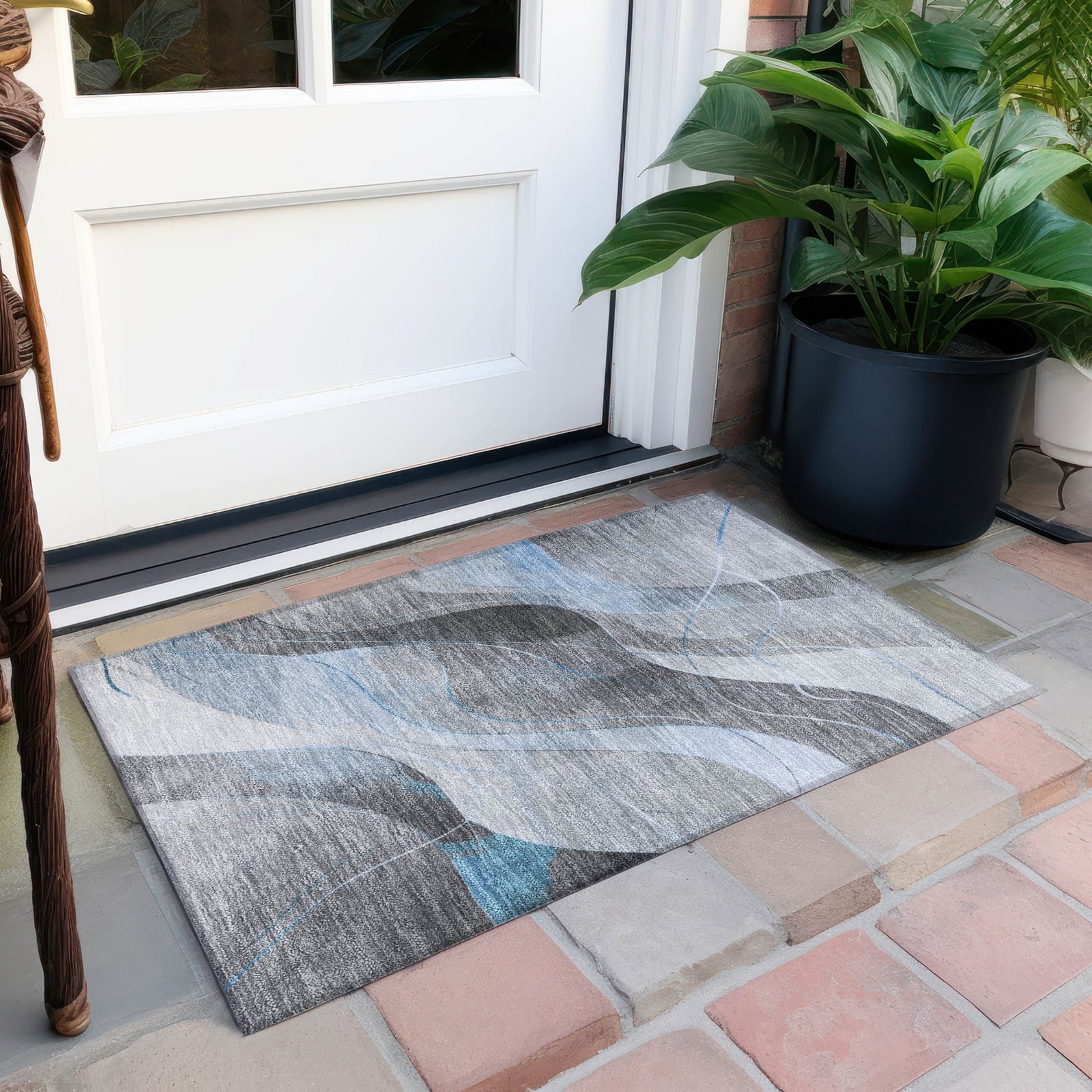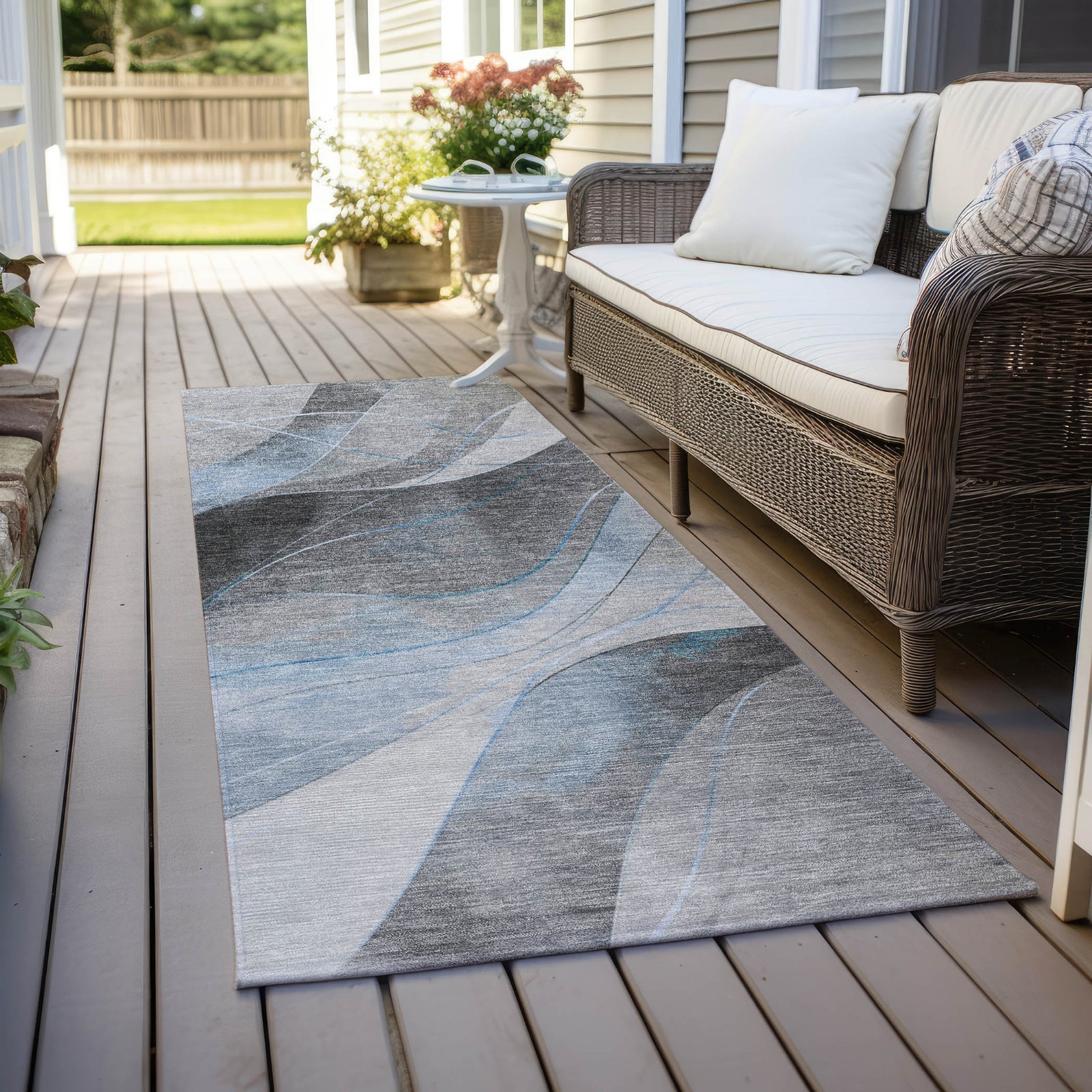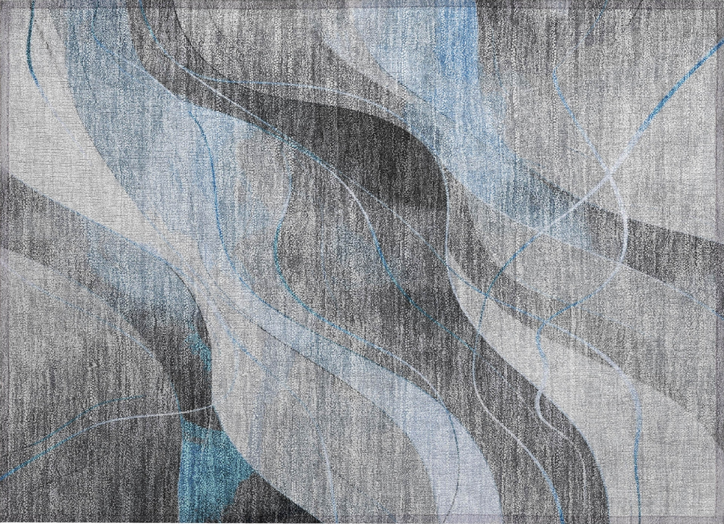 Waves of intricate swirls paired with small thin lines define the design of this transitional rug. The sophisticated pattern adds a touch of elegance and modern flair to your decor. UV stabilized for durability, this rug is ideal for both indoor and outdoor use, maintaining its striking appearance through regular wear. Its ultra-thin profile fits effortlessly under furniture, and it's machine-washable for hassle-free care. Perfect for family and pet-friendly spaces, this rug blends style with practical functionality.