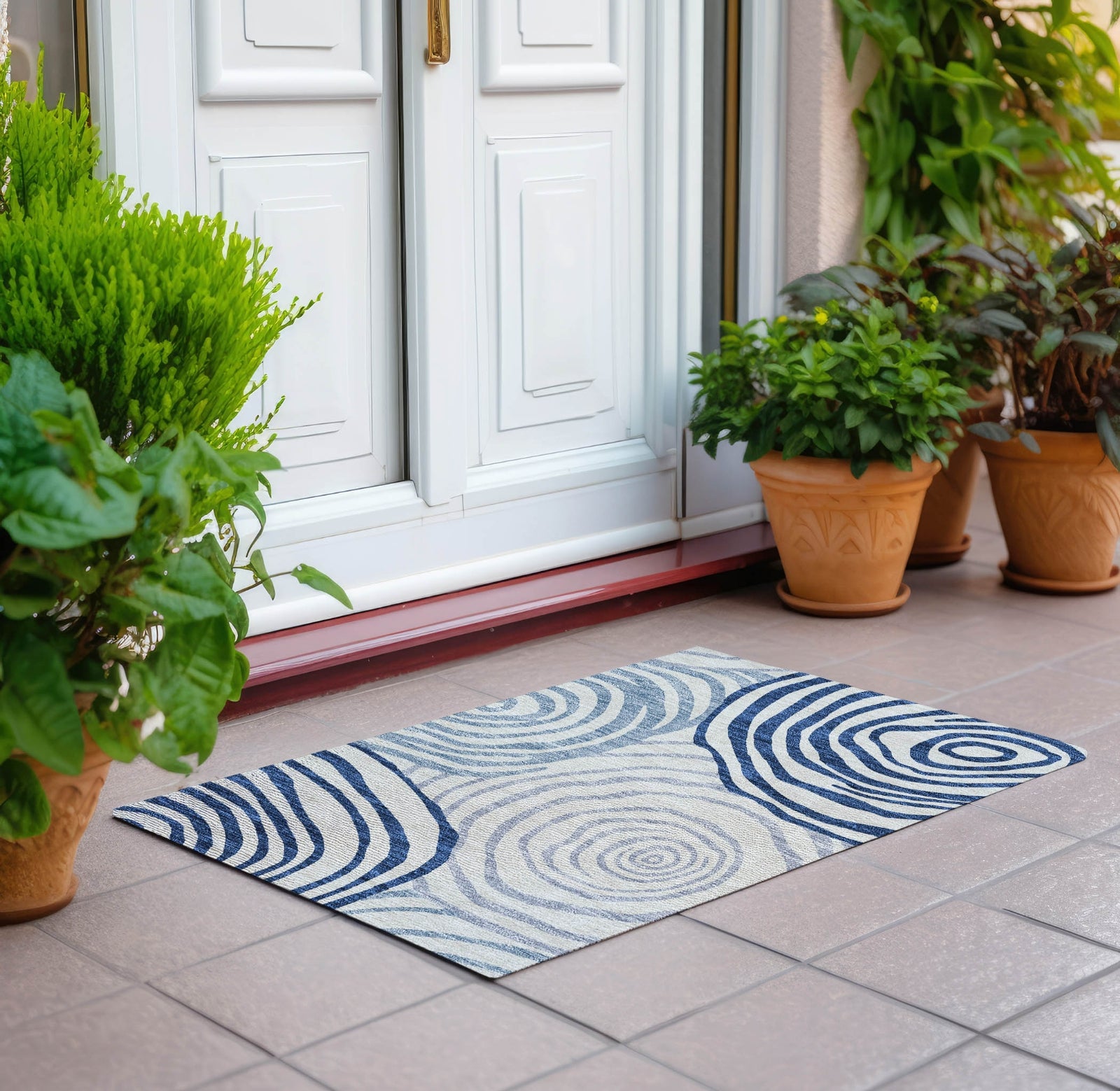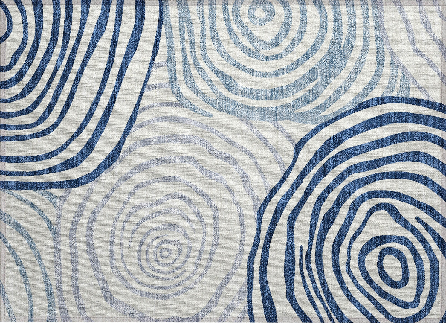 Large free-form circles dominate the design of the rug, bringing a modern and transitional fusion to the traditional swirl pattern. This stylish piece adds a contemporary edge to any space. It's UV stabilized for versatility, ultra-thin for a sleek look, machine-washable for convenience, and ideal for households with pets and kids.