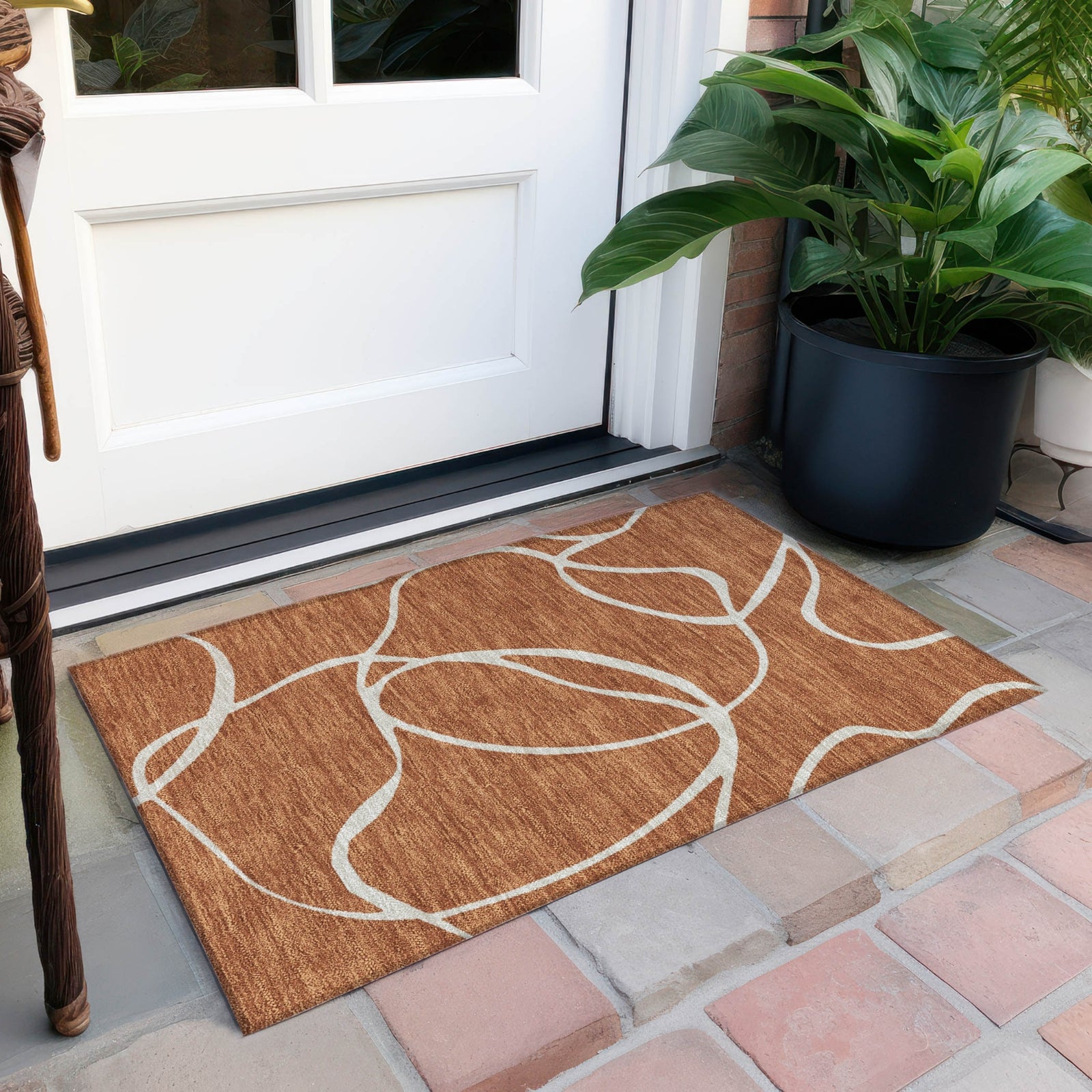Step into a world of abstract elegance with our area rug, boasting a random ribbon pattern and free-style swirls that capture a transitional aesthetic. Its a versatile piece that enhances any room. Designed with your lifestyle in mind, this rug is UV stabilized, ultra-thin, and machine-washable, making it ideal for busy, indoor-outdoor environments and perfect for families with pets.