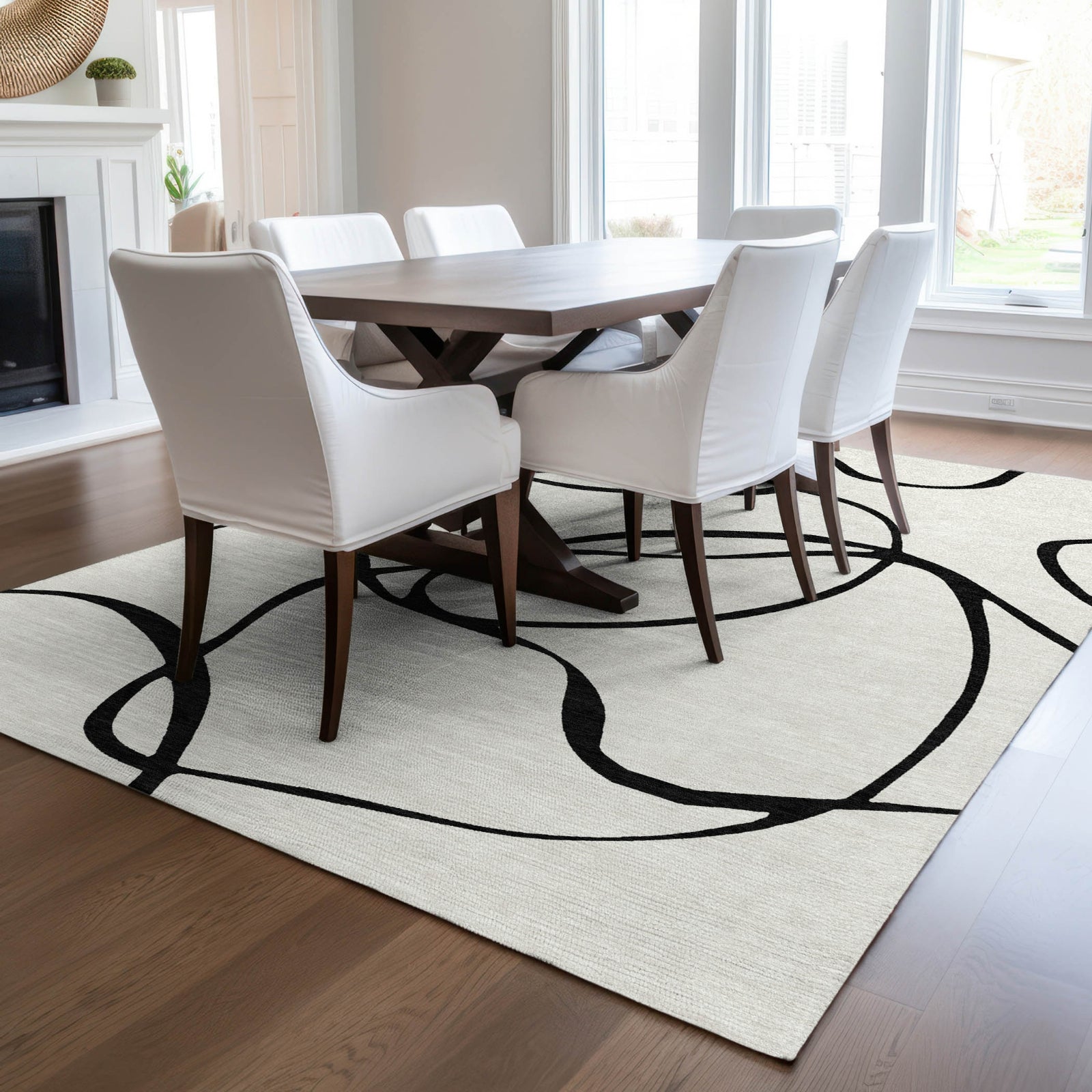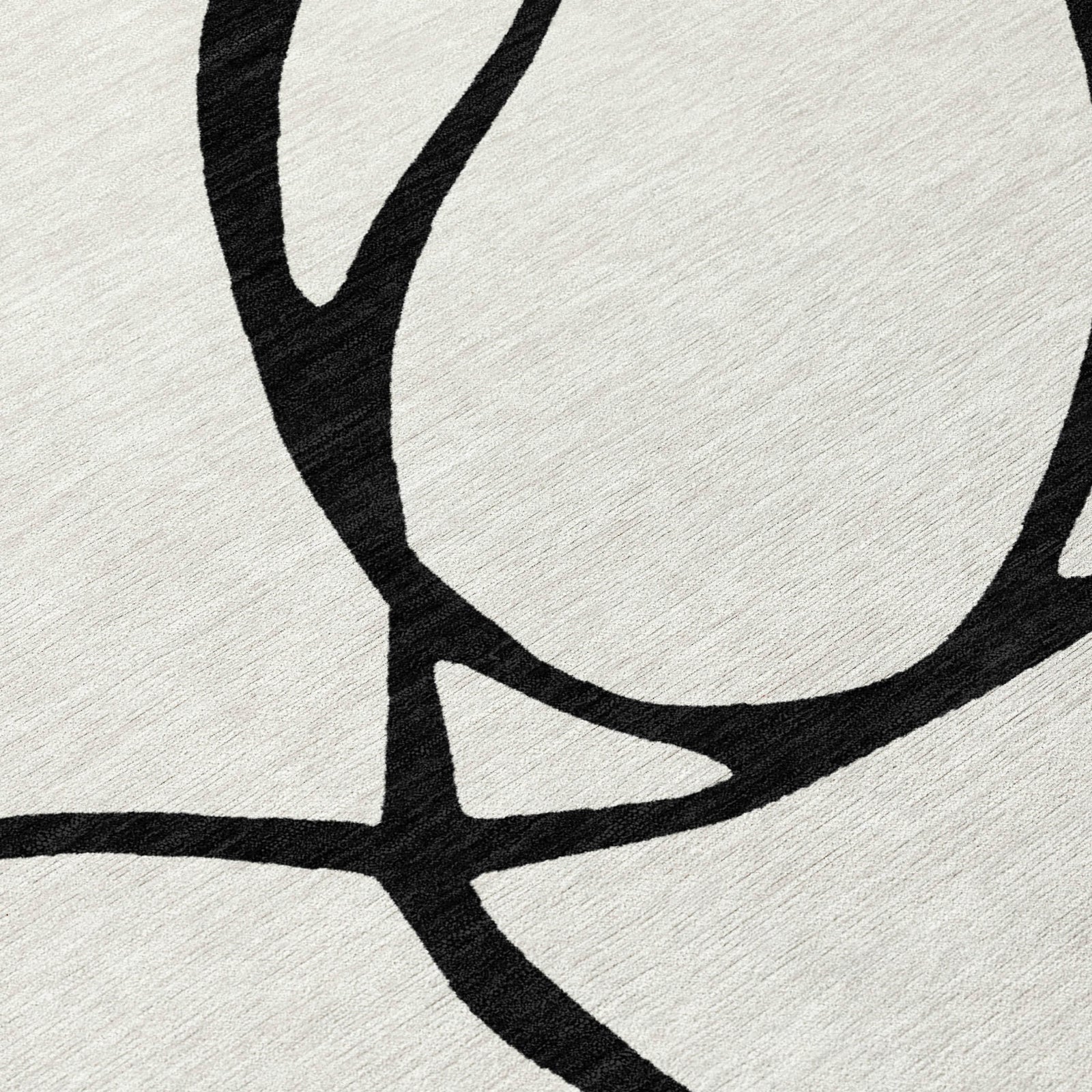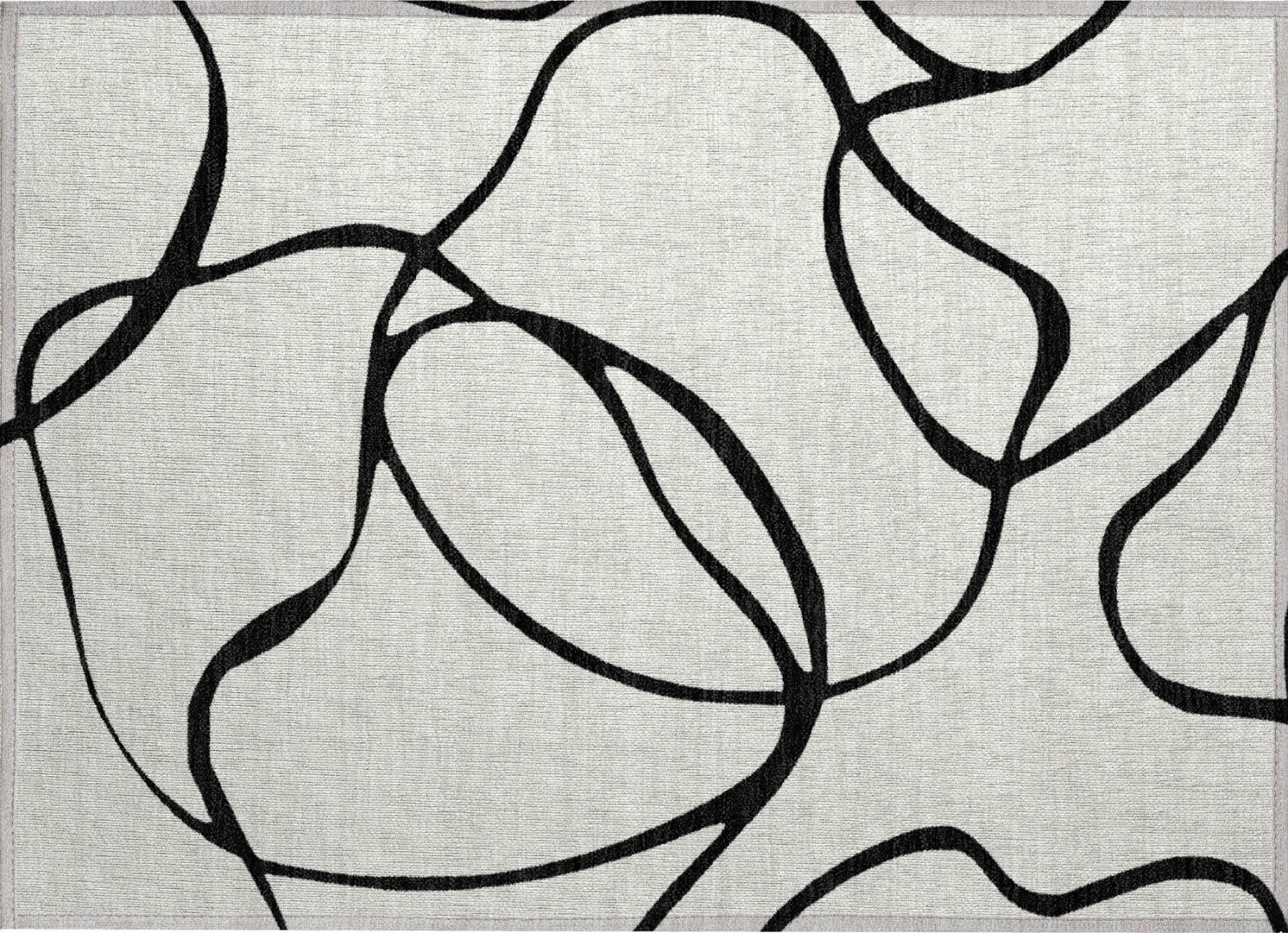 Step into a world of abstract elegance with our area rug, boasting a random ribbon pattern and free-style swirls that capture a transitional aesthetic. Its a versatile piece that enhances any room. Designed with your lifestyle in mind, this rug is UV stabilized, ultra-thin, and machine-washable, making it ideal for busy, indoor-outdoor environments and perfect for families with pets.