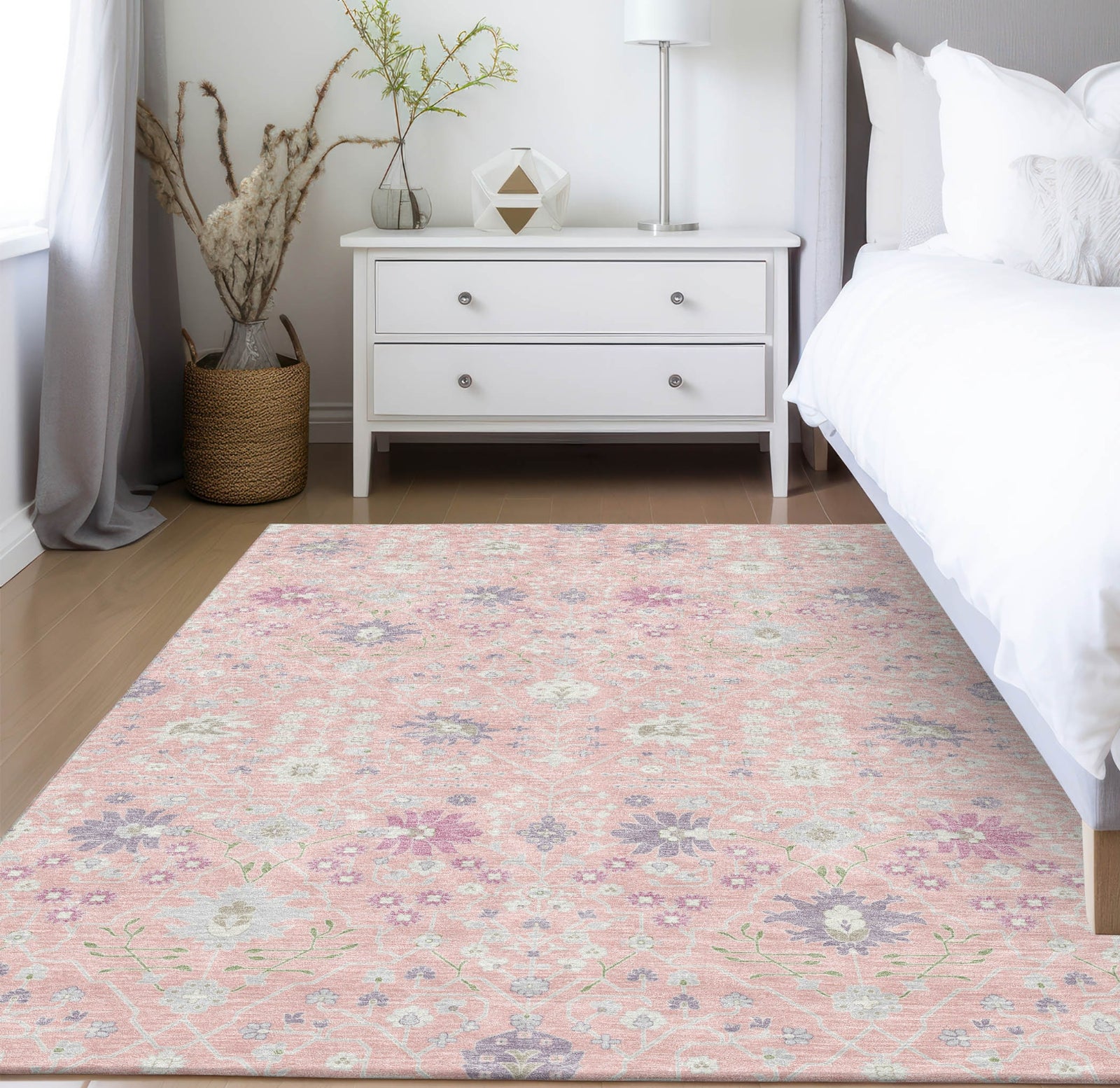 Piper Looms Chantille Traditional ACN1009 Pink Machine Washable Area Rug