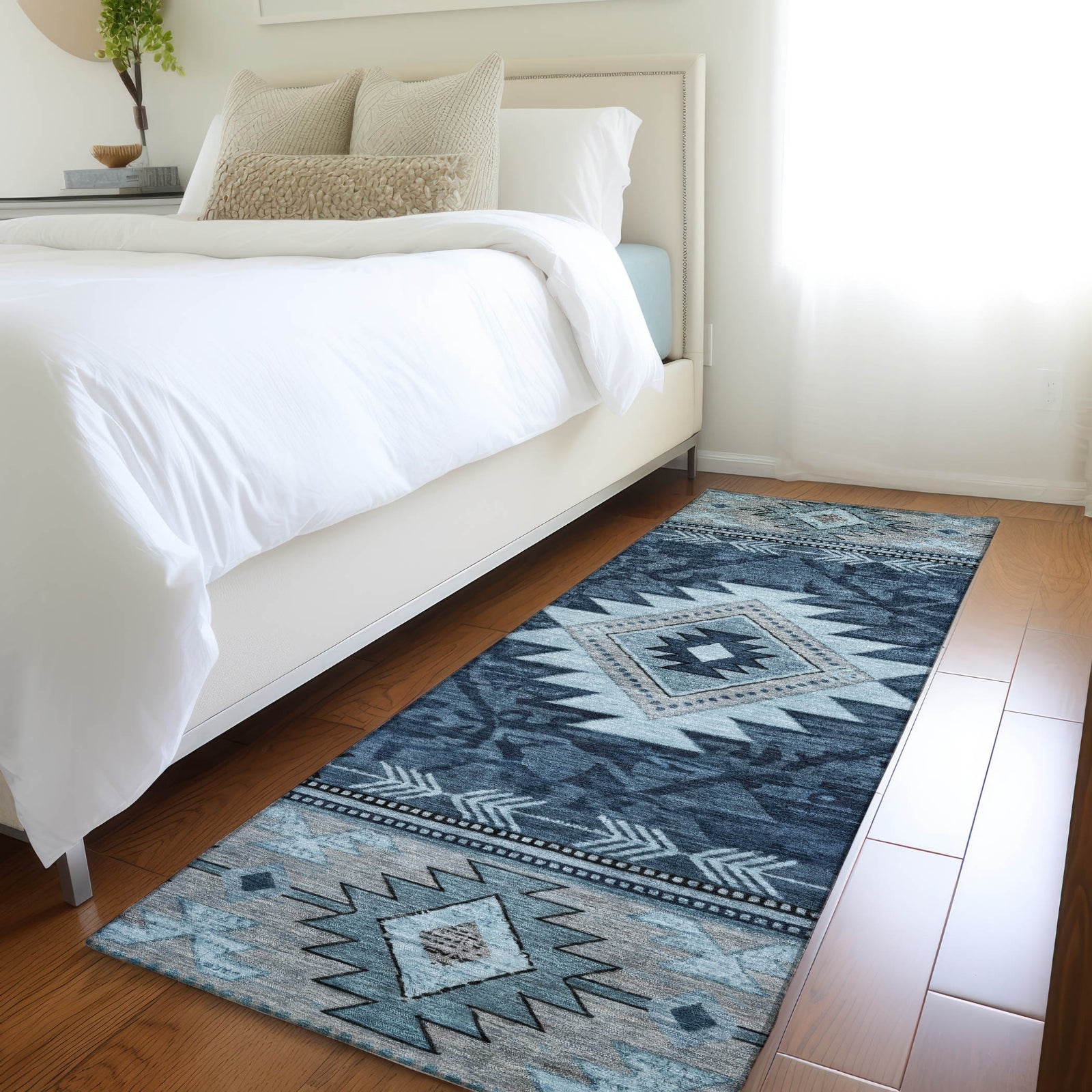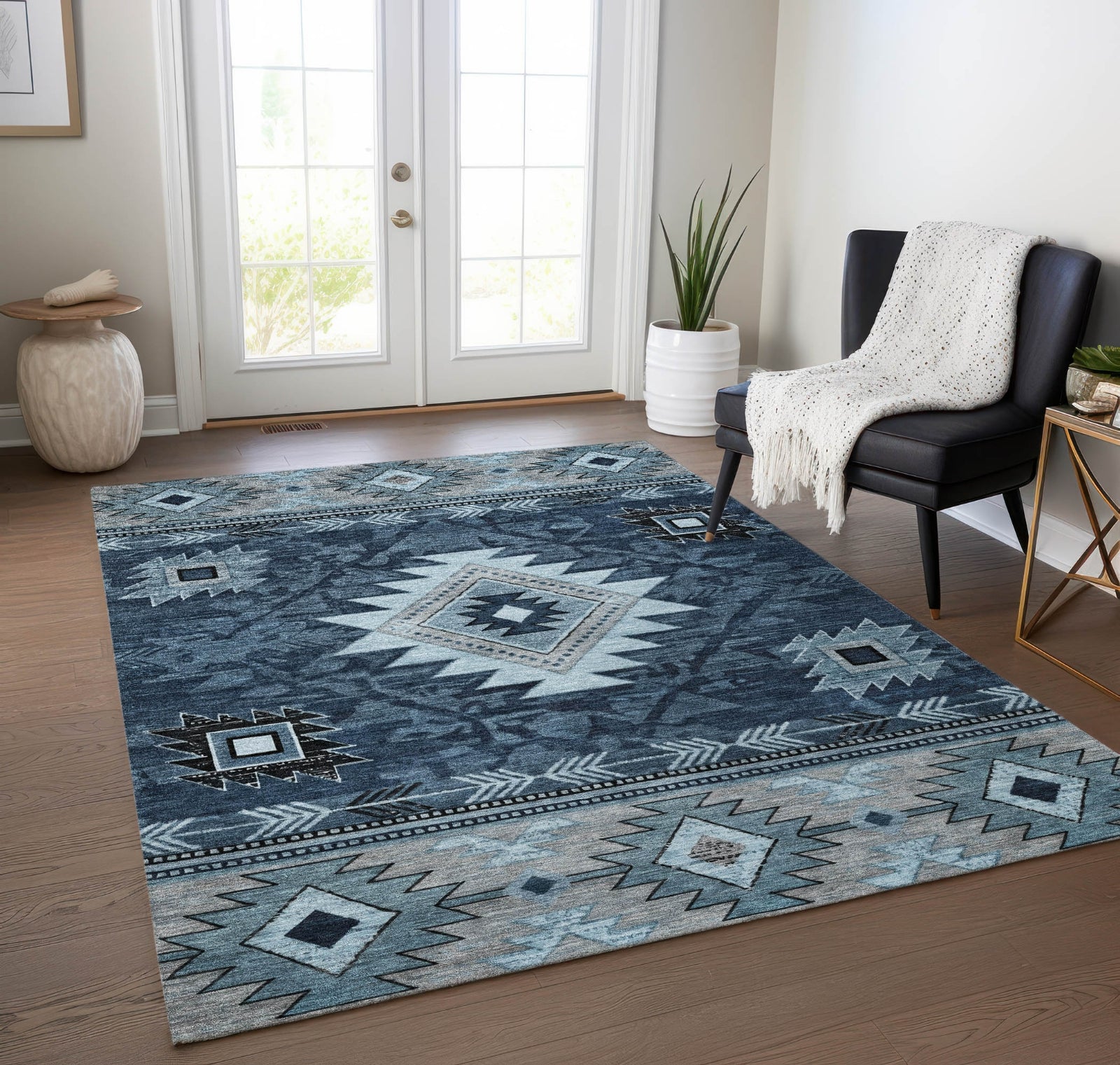 Piper Looms Chantille Tribal ACN1754 Blue Machine Washable Area Rug