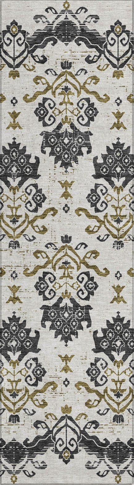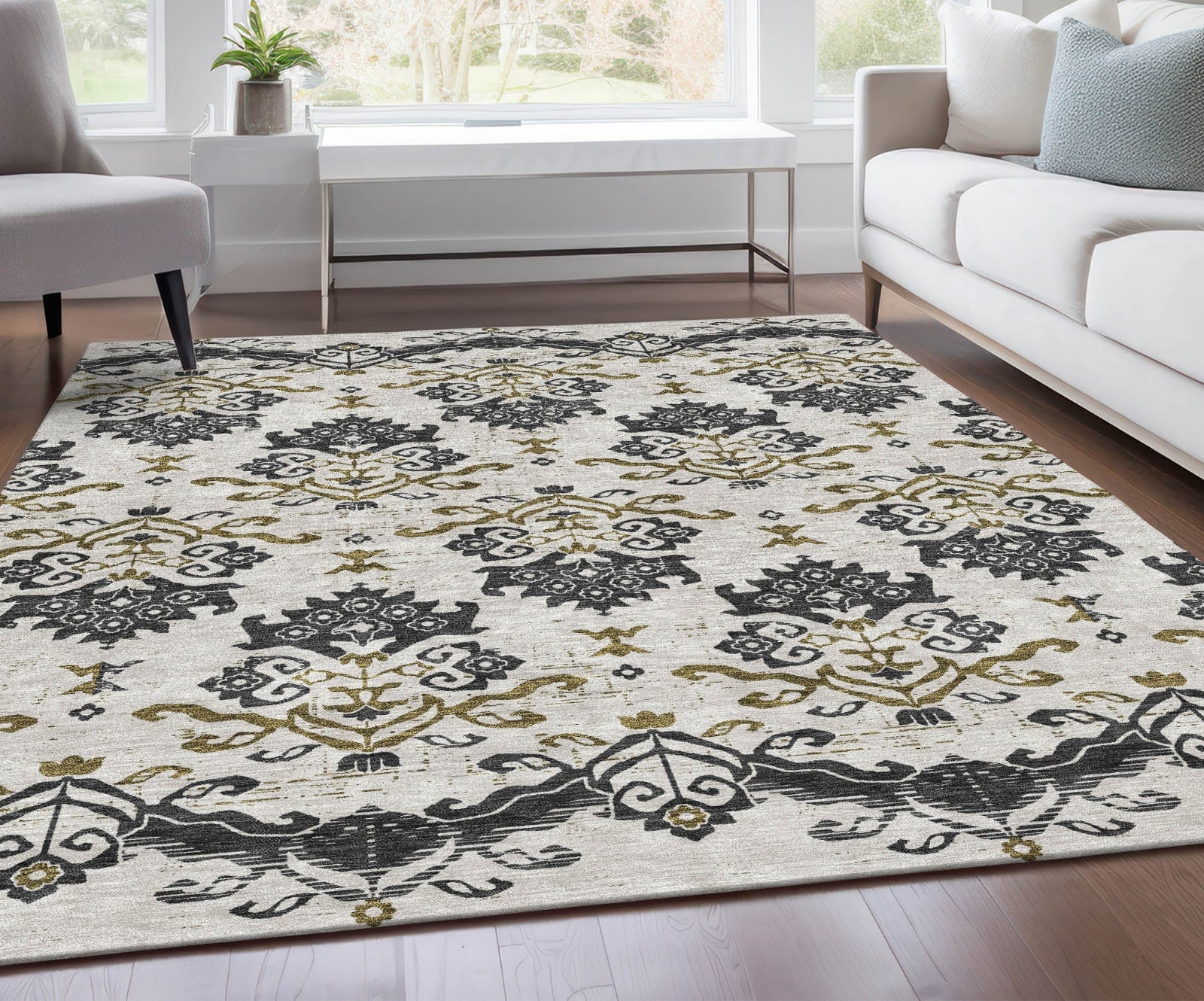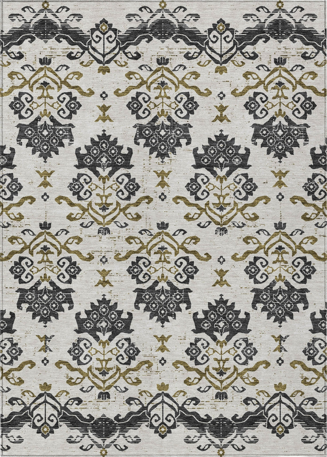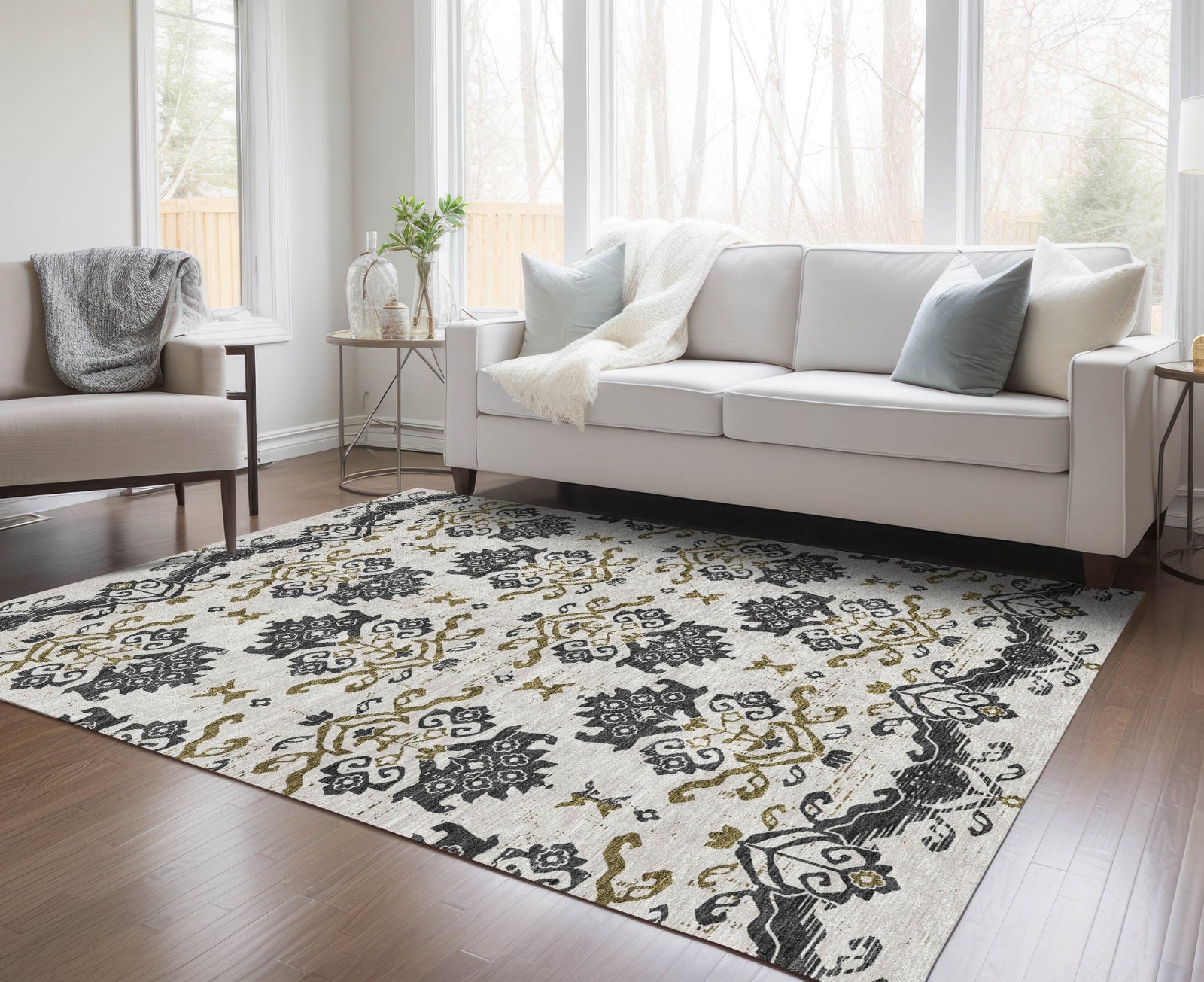 Indulge in the modern sophistication of our rug, adorned with traditional motifs that evoke a relaxed, over-scaled vintage vibe. This transitional design combines a sense of historical charm with contemporary practicality, adding an artistic touch to your home. It's UV stabilized for varied use, ultra-thin for a sleek profile, machine-washable for easy care, and family and pet-friendly, making it an ideal choice for any stylish home.