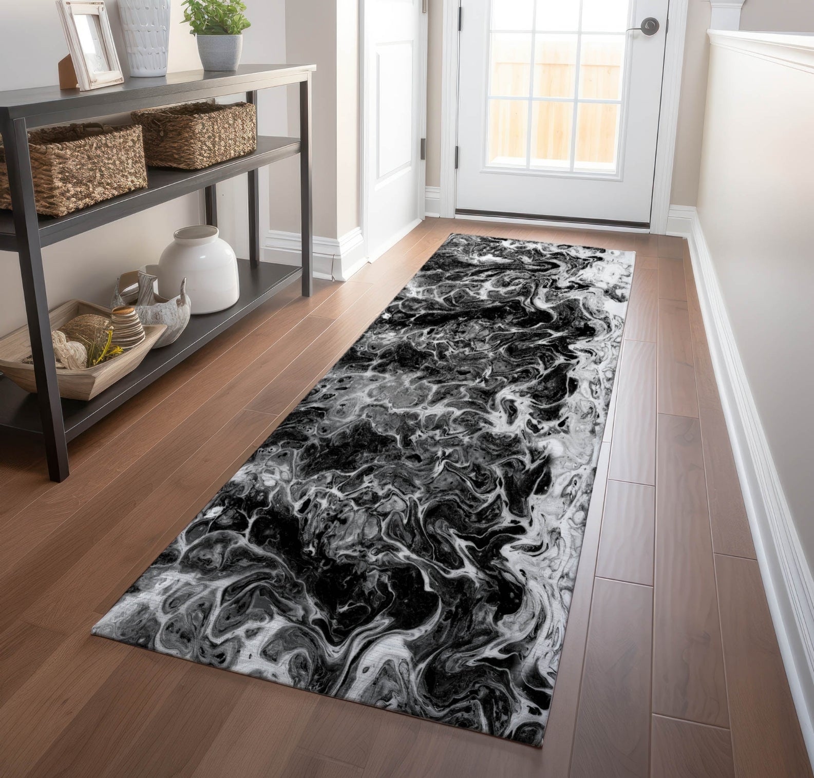 Let this rug transform your space with its abstract acrylic paint pour pattern, offering a fresh and contemporary look. Perfect for indoor and covered outdoor use, the rug's soft, thick, and plush microfiber pile ensures comfort and style. Family and pet-friendly, its premium machine washable design allows for effortless upkeep.