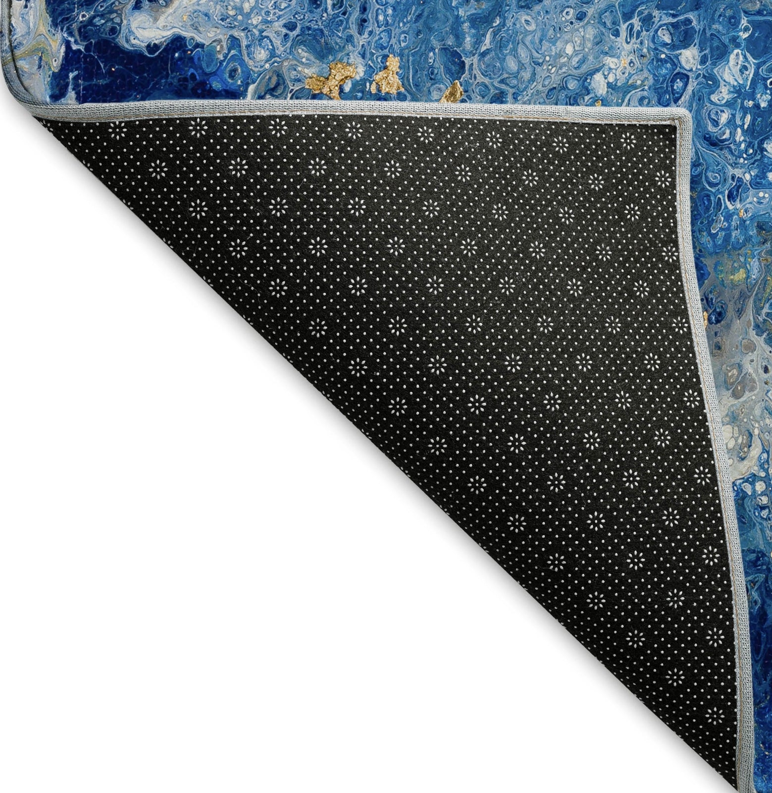 Decorate your home with this striking rug, where an abstract acrylic paint pour pattern meets contemporary design. Suitable for indoor and covered outdoor use, it boasts a soft, thick, and plush microfiber pile that adds a layer of comfort. Family and pet-friendly, its premium machine washable quality makes it a practical choice for any active household.