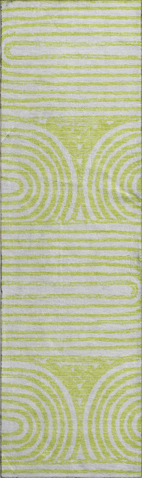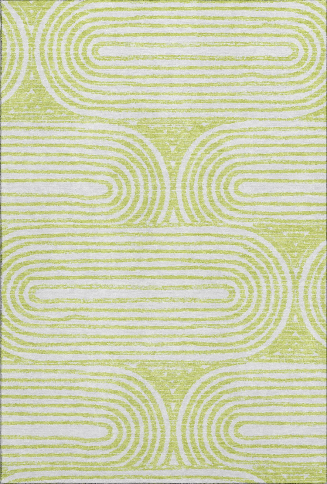 The modern flair of this rug is highlighted by its ribbed oval pattern and repeating Art Deco design, perfect for contemporary interiors. The dynamic pattern adds a stylish and artistic element that enhances any space with its sleek aesthetic. Experience the comfort of the plush microfiber pile and the UV stabilization that ensures durability for indoor and covered outdoor use. Additionally, it is premium machine washable, suitable for family and pet-friendly homes.
