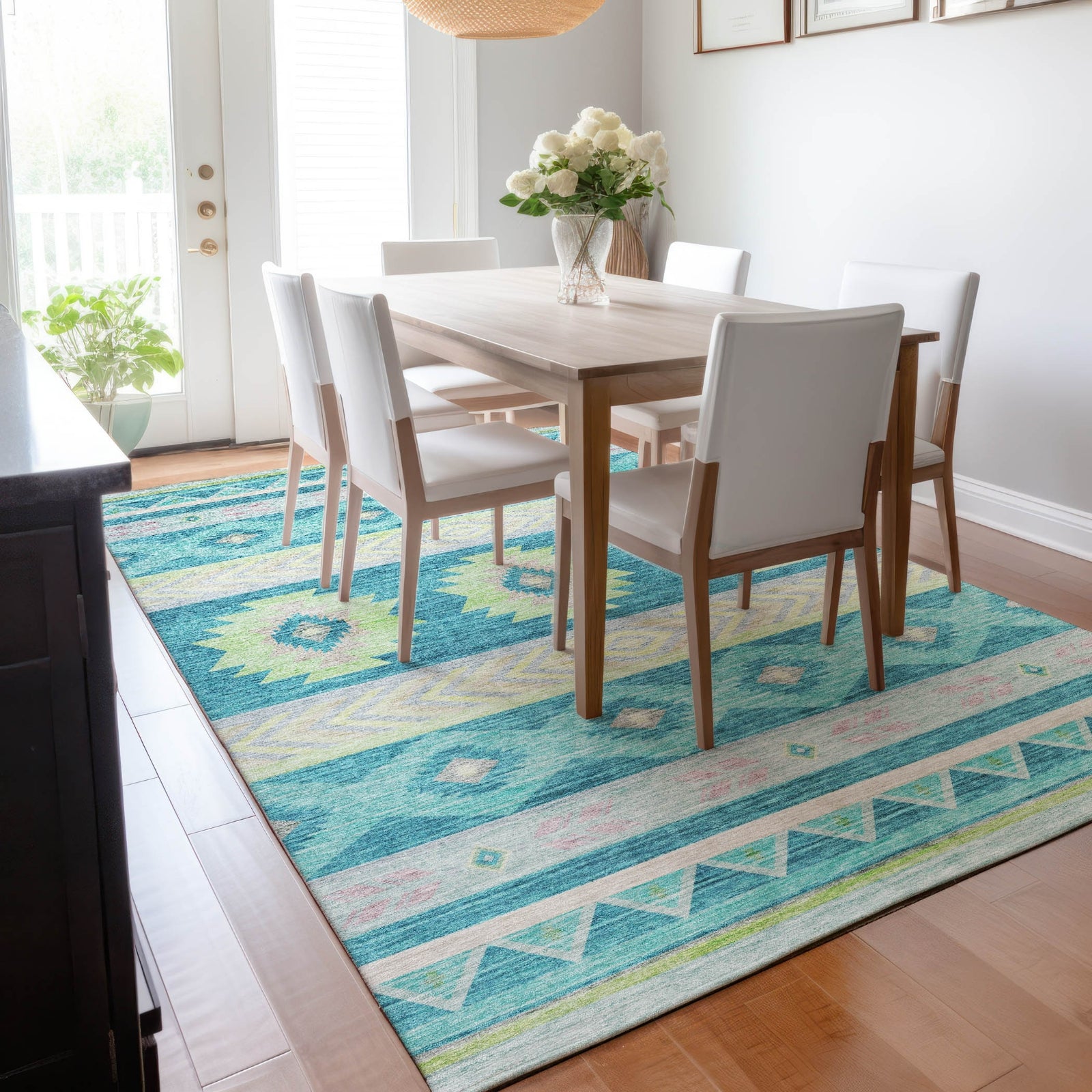 Piper Looms Mayfield Aztec AMF178 Peacock Machine Washable Area Rug
