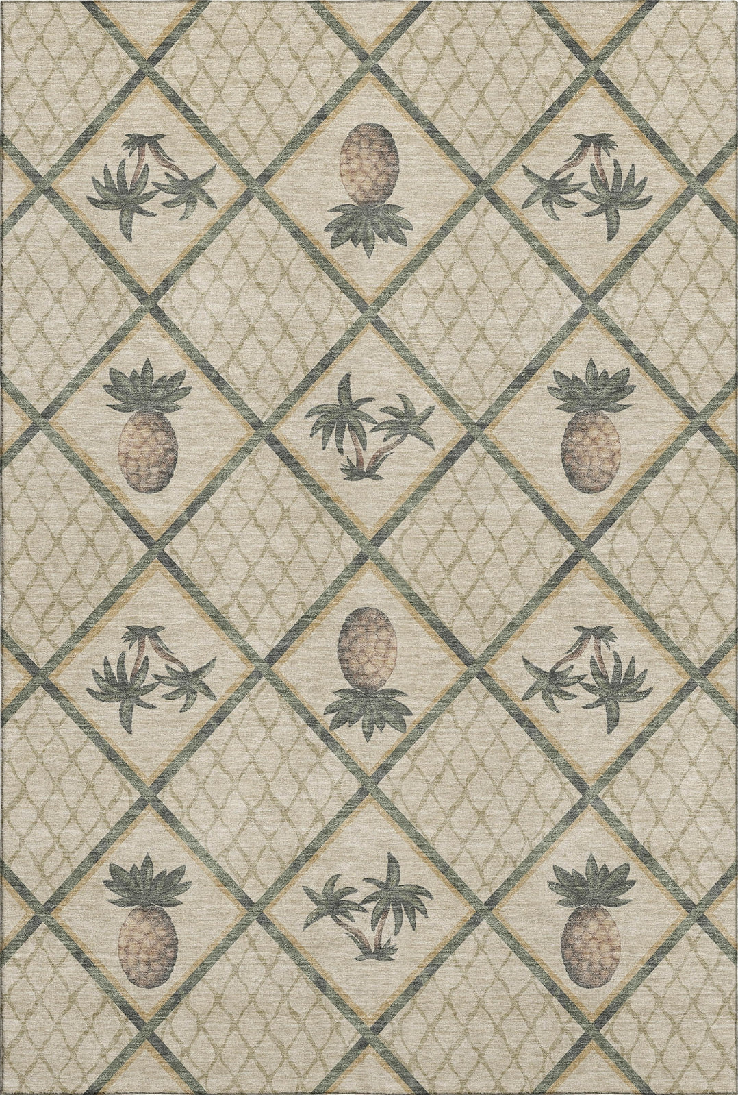 Piper Looms Mayfield Bamboo and Pineapples AMF162 Palm Machine Washable Area Rug