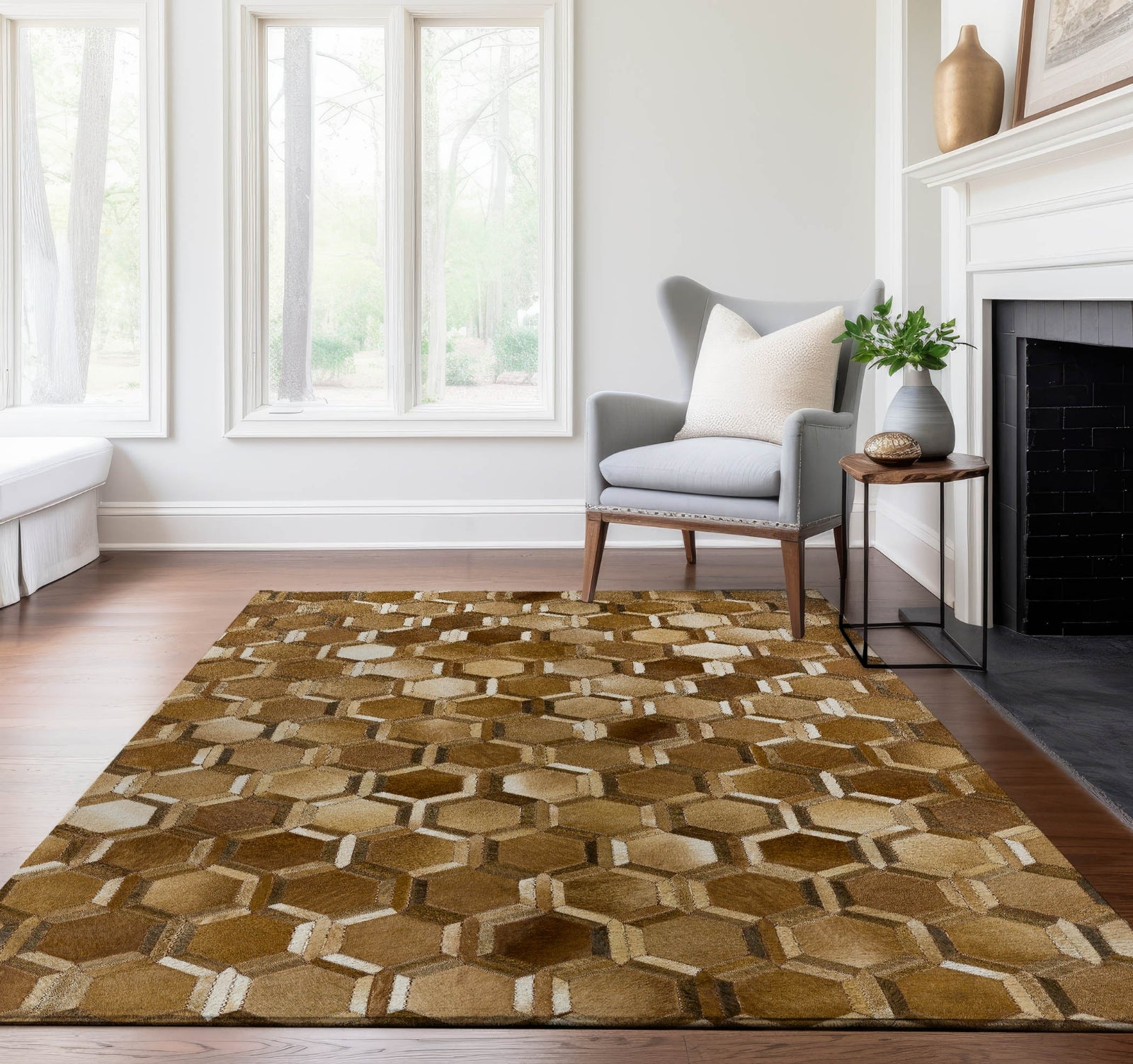 Discover the unique charm of this rug, adorned with double octagon motifs inspired by animal prints on a cowhide backdrop. Perfect for indoor and covered outdoor areas, it features a soft, thick, and plush microfiber pile. This rug is also premium machine washable, making it an essential choice for pet-friendly or family-oriented environments.
