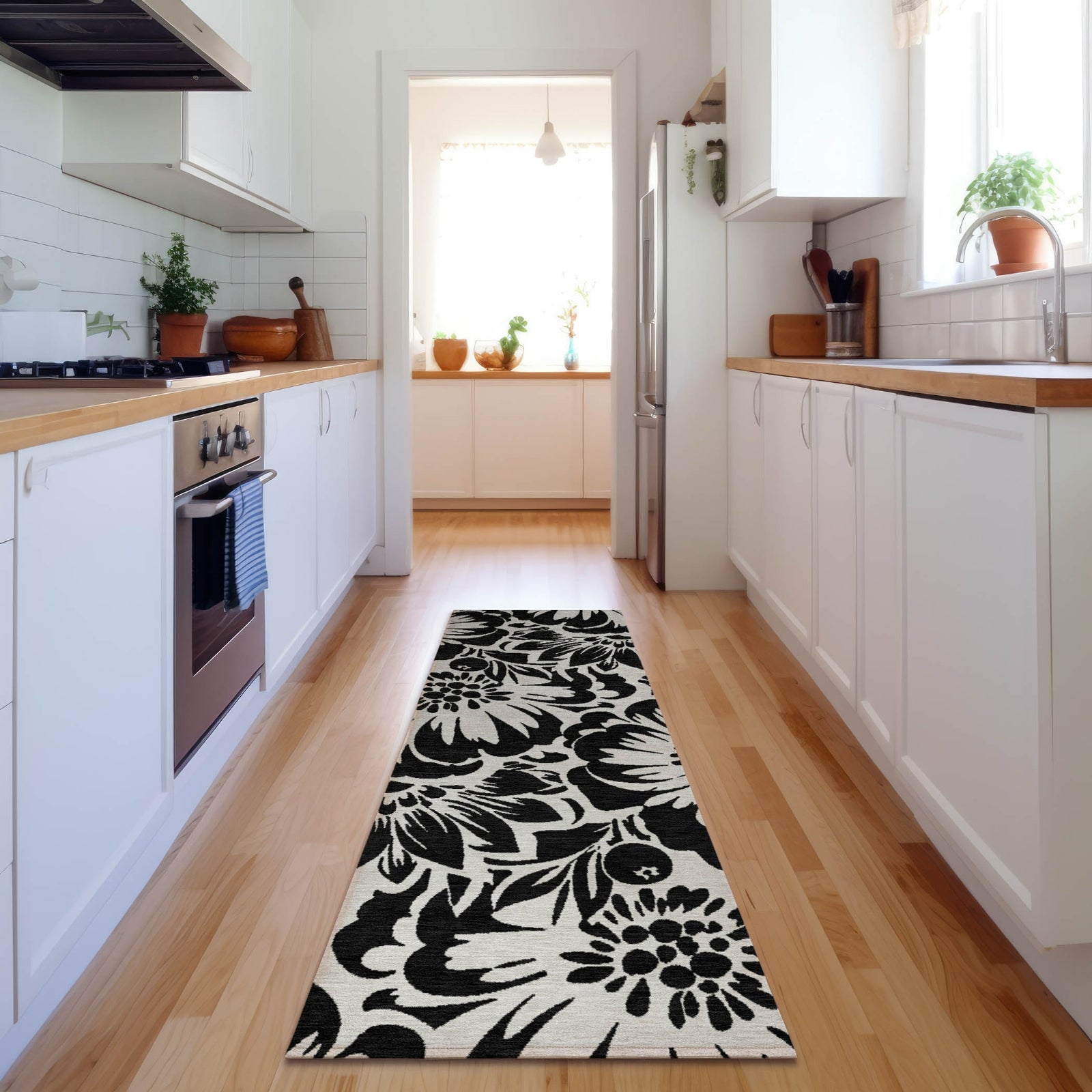 Piper Looms Mayfield Floral AMF551 Black Machine Washable Area Rug