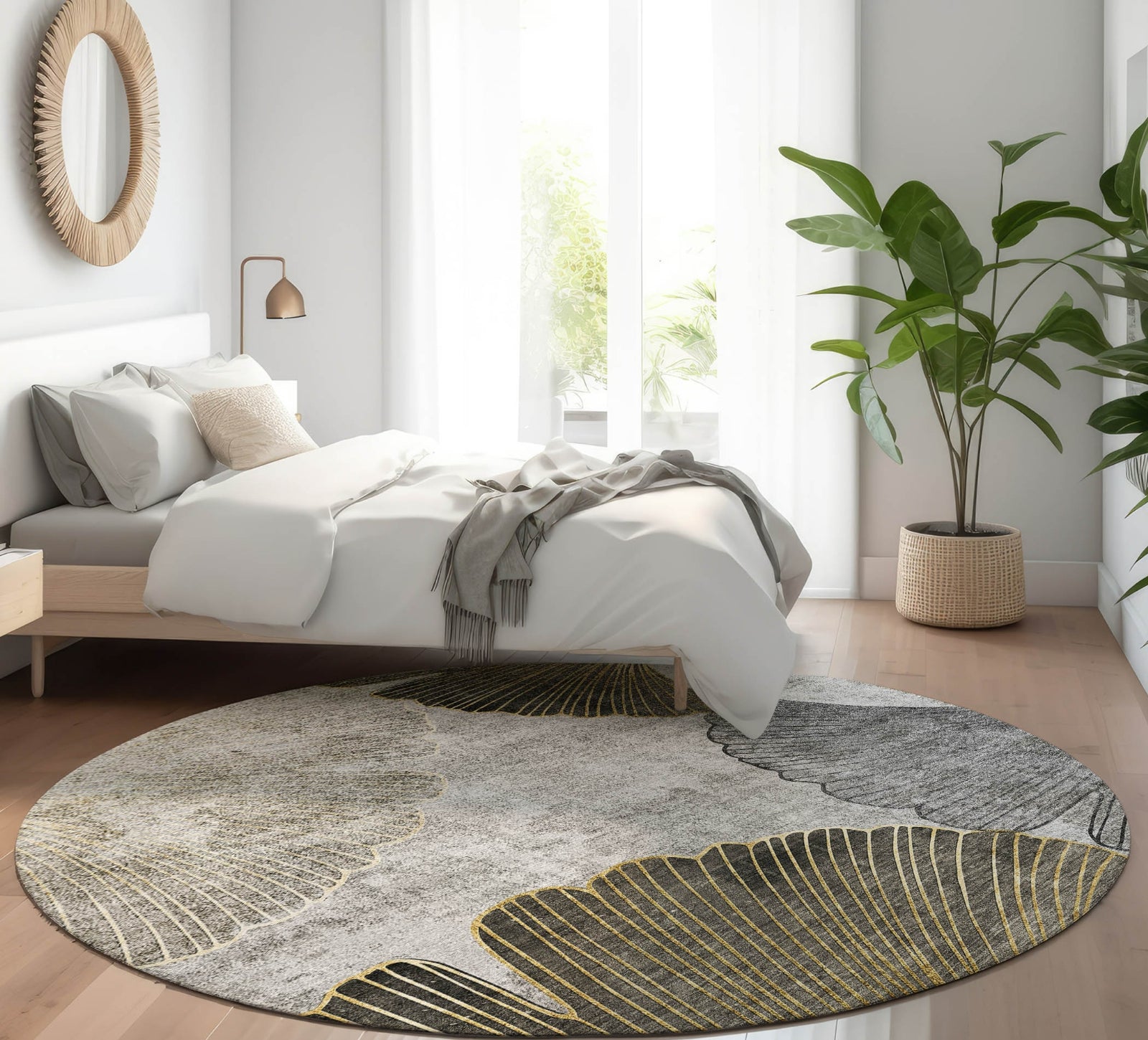 Sweeping floral petals connect to form a soft and elegant pattern on this rug, adding a gentle focal point to transitional decor. The flowing design introduces texture and depth, enhancing the room with a calming and sophisticated touch. Its unique mix of classic and contemporary elements offers a stylish and polished look. Perfect for indoor and covered outdoor use, this rug features a thick, plush microfiber pile that offers soft comfort for every step. Its premium machine washable construction makes cleaning a breeze, while its family and pet-friendly design ensures it can handle the demands of everyday life. Add a touch of cozy elegance to your space with this versatile rug.