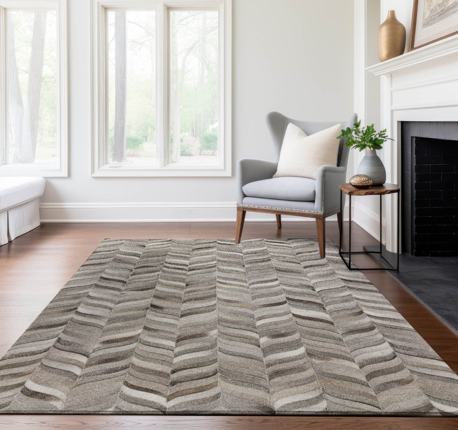 Enhance your decor with this stunning rug, where small box motifs inspired by animal prints meet a cowhide design in a herringbone arrangement. Perfect for both indoor and covered outdoor use, it boasts a soft, thick, and plush microfiber pile. The rug's premium machine washable feature also makes it a favored choice for pet-friendly homes, offering both comfort and style.