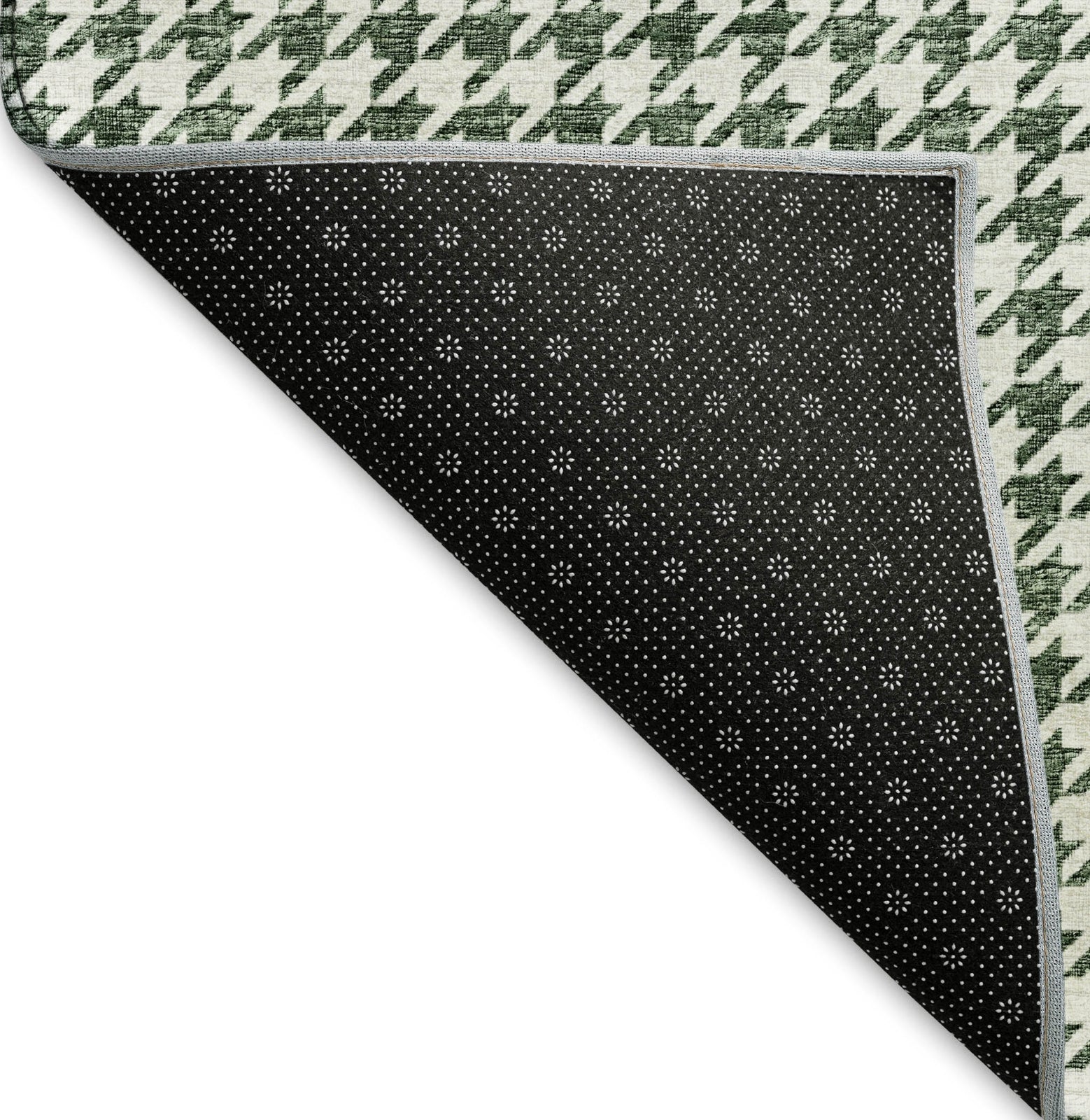Find your floor's new best friend with this trendy rug, featuring a small houndstooth pattern that's easy to love. It's soft, it's thick, and it's perfect for indoor use or under a covered patio. And guess what? You can wash it right at home.