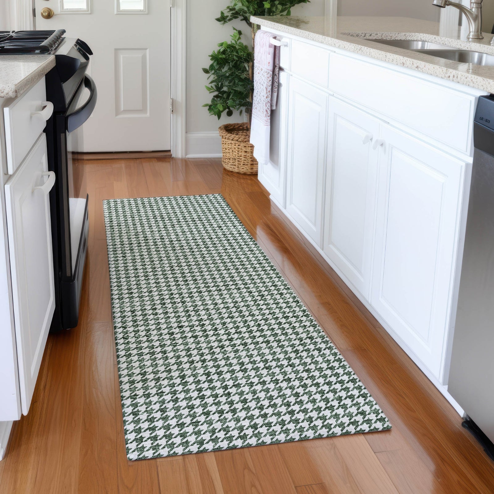Piper Looms Mayfield Houndstooth AMF137 Green Machine Washable Area Rug
