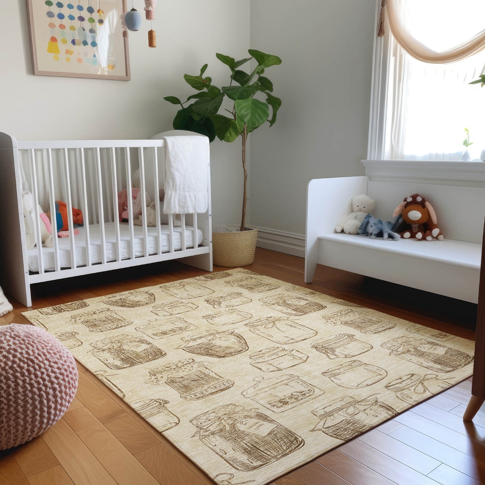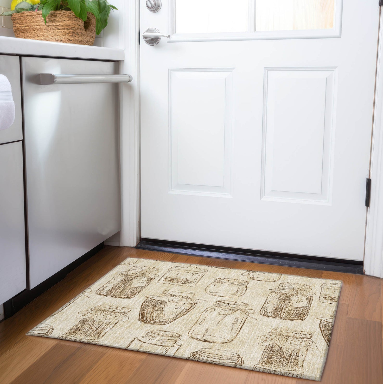 Piper Looms Mayfield Mason Jars AMF173 Beige Machine Washable Area Rug