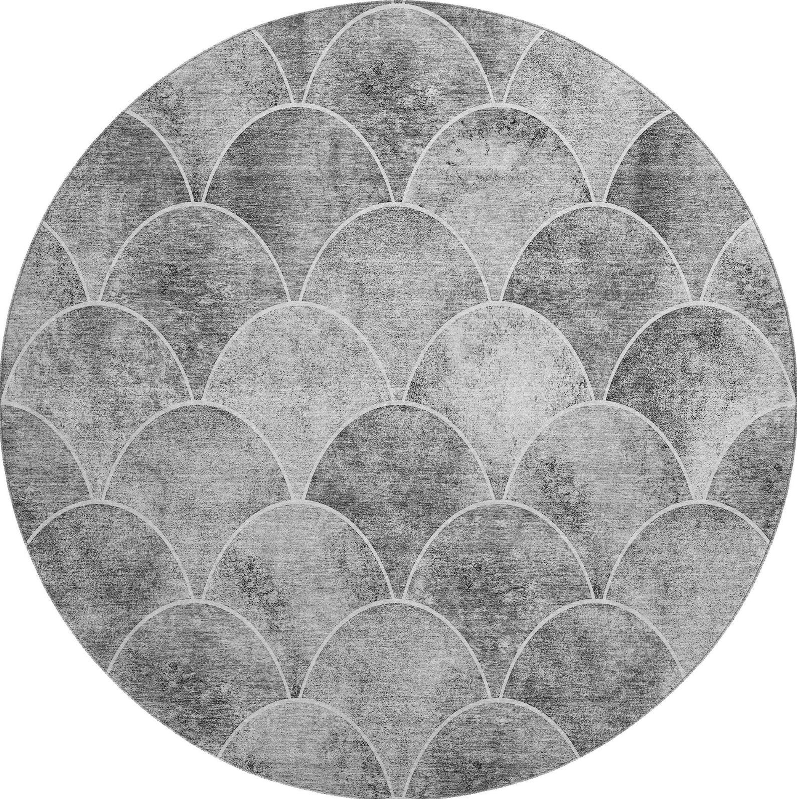 This rug's uniform design of scale-shaped motifs adds a modern twist to transitional decor, creating a look that is both structured and stylish. The repeating pattern brings texture and depth, making it a captivating centerpiece for any room. Its blend of traditional and contemporary influences offers a sophisticated touch. Perfect for indoor and covered outdoor use, this rug features a thick, plush microfiber pile that offers soft comfort for every step. Its premium machine washable construction makes cleaning a breeze, while its family and pet-friendly design ensures it can handle the demands of everyday life. Add a touch of cozy elegance to your space with this versatile rug.