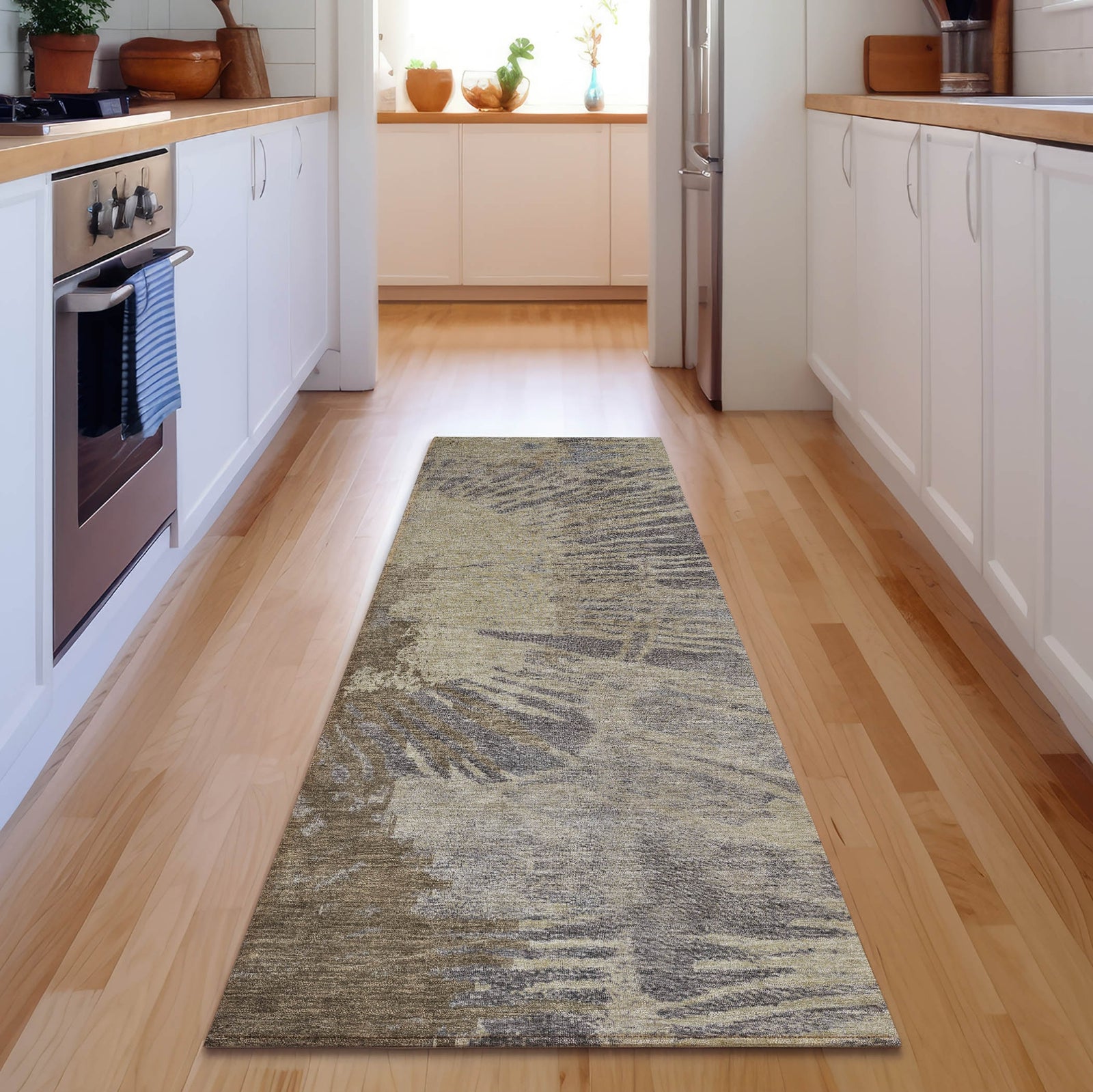 The unrefined, flowing lines on this rug create a distinctive modern pattern, adding texture and depth to transitional decor. The dynamic side burst introduces a sense of movement, enhancing the room with a stylish and energetic touch. Its unique mix of classic influences and modern textures offers a polished and engaging appearance. Perfect for indoor and covered outdoor use, this rug features a thick, plush microfiber pile that offers soft comfort for every step. Its premium machine washable construction makes cleaning a breeze, while its family and pet-friendly design ensures it can handle the demands of everyday life. Add a touch of cozy elegance to your space with this versatile rug.