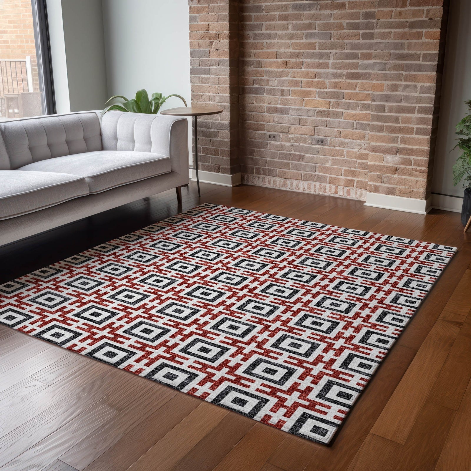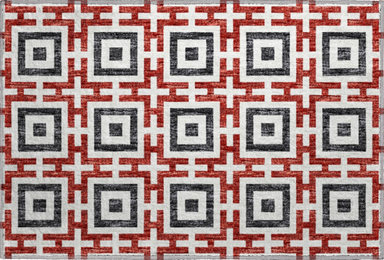 Piper Looms Mayfield Modern Squares AMF139 Red Machine Washable Area Rug