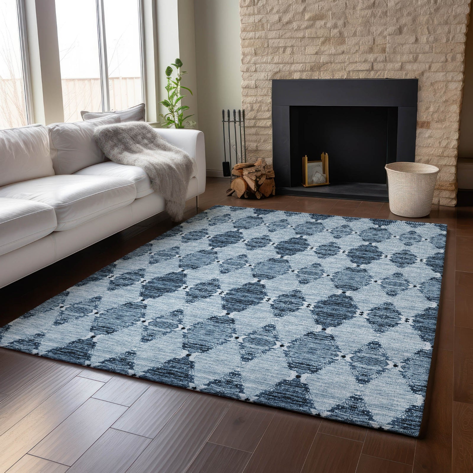 Featuring a detailed pattern of diamond motifs, this rug captures the allure of Moroccan design within a transitional framework. The intricate motifs add texture and movement, making it an engaging focal point in any room. Its unique combination of classic and modern styles offers a sophisticated and worldly touch to your home. Perfect for indoor and covered outdoor use, this rug features a thick, plush microfiber pile that offers soft comfort for every step. Its premium machine washable construction makes cleaning a breeze, while its family and pet-friendly design ensures it can handle the demands of everyday life. Add a touch of cozy elegance to your space with this versatile rug.