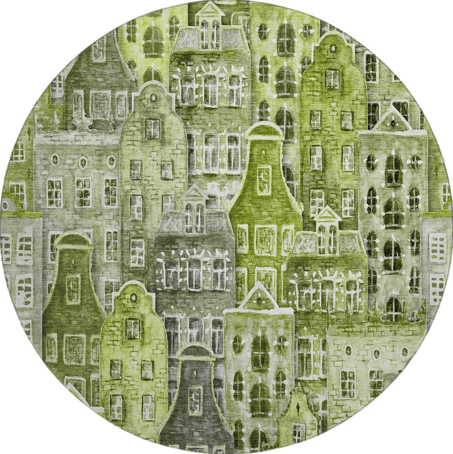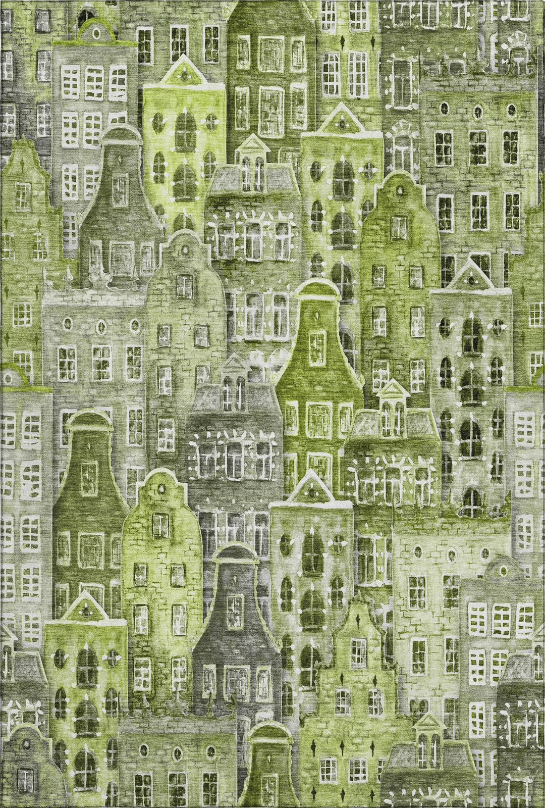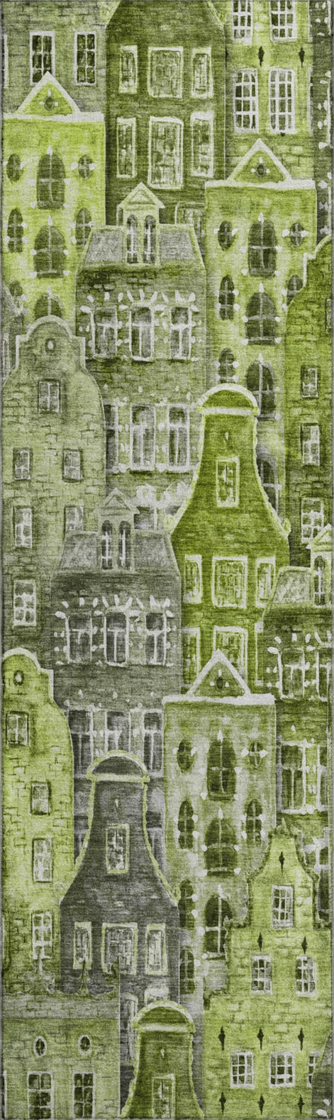The pattern of narrow houses on this rug forms a charming village scene, adding a unique and delightful touch to transitional decor. The novelty design introduces texture and visual interest, creating a warm and inviting atmosphere in any room. Its artistic blend of classic and contemporary influences offers a stylish and sophisticated look. Perfect for indoor and covered outdoor use, this rug features a thick, plush microfiber pile that offers soft comfort for every step. Its premium machine washable construction makes cleaning a breeze, while its family and pet-friendly design ensures it can handle the demands of everyday life. Add a touch of cozy elegance to your space with this versatile rug.