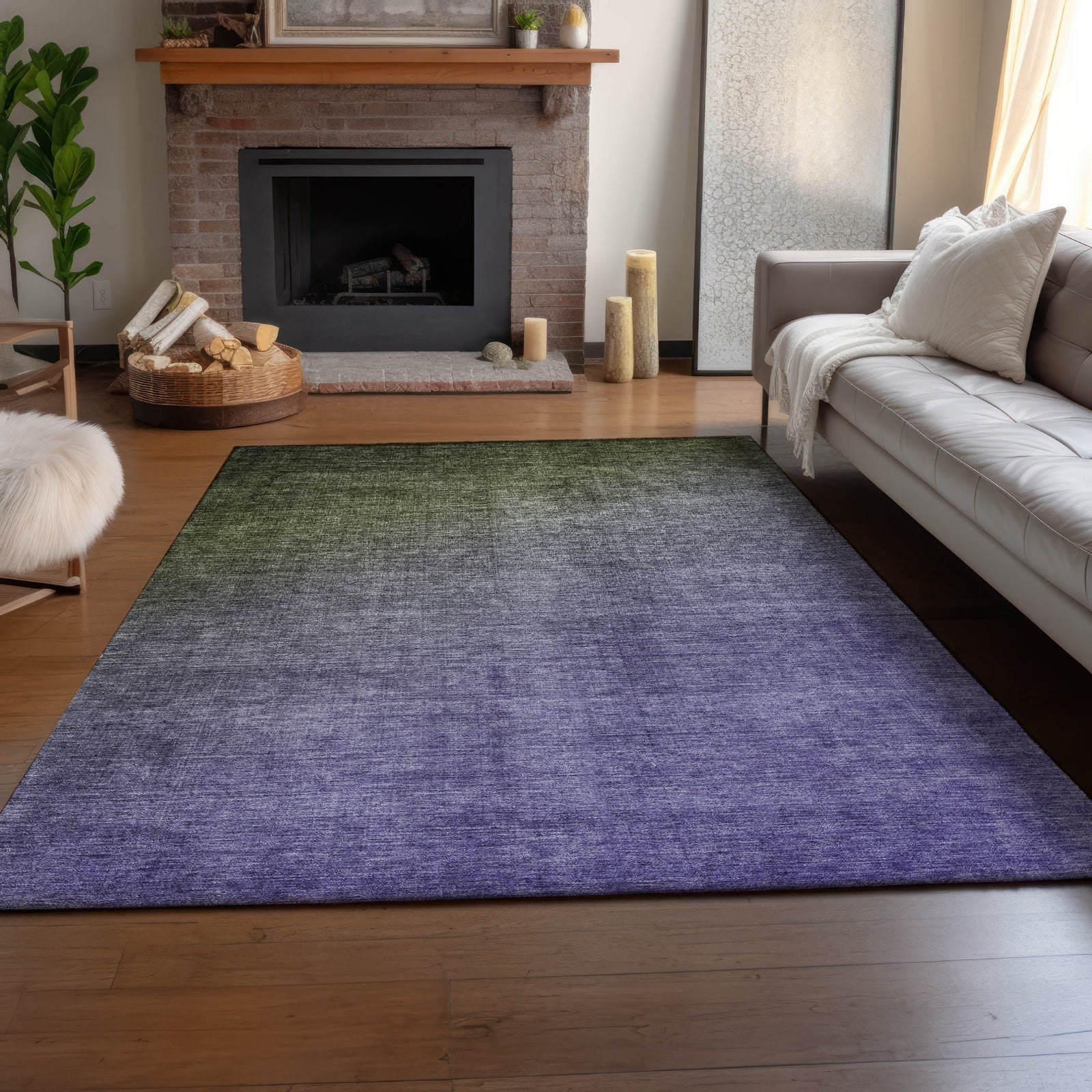 With complementing tones creating a soft ombre design, this rug enhances transitional decor with its subtle, stylish gradient. The elegant effect adds a refined touch to any room, effortlessly fitting into diverse interior themes. Experience the plush comfort of the thick microfiber pile and UV stabilization for durability in indoor and covered outdoor areas. Additionally, it is premium machine washable, making it a great choice for homes with families and pets.