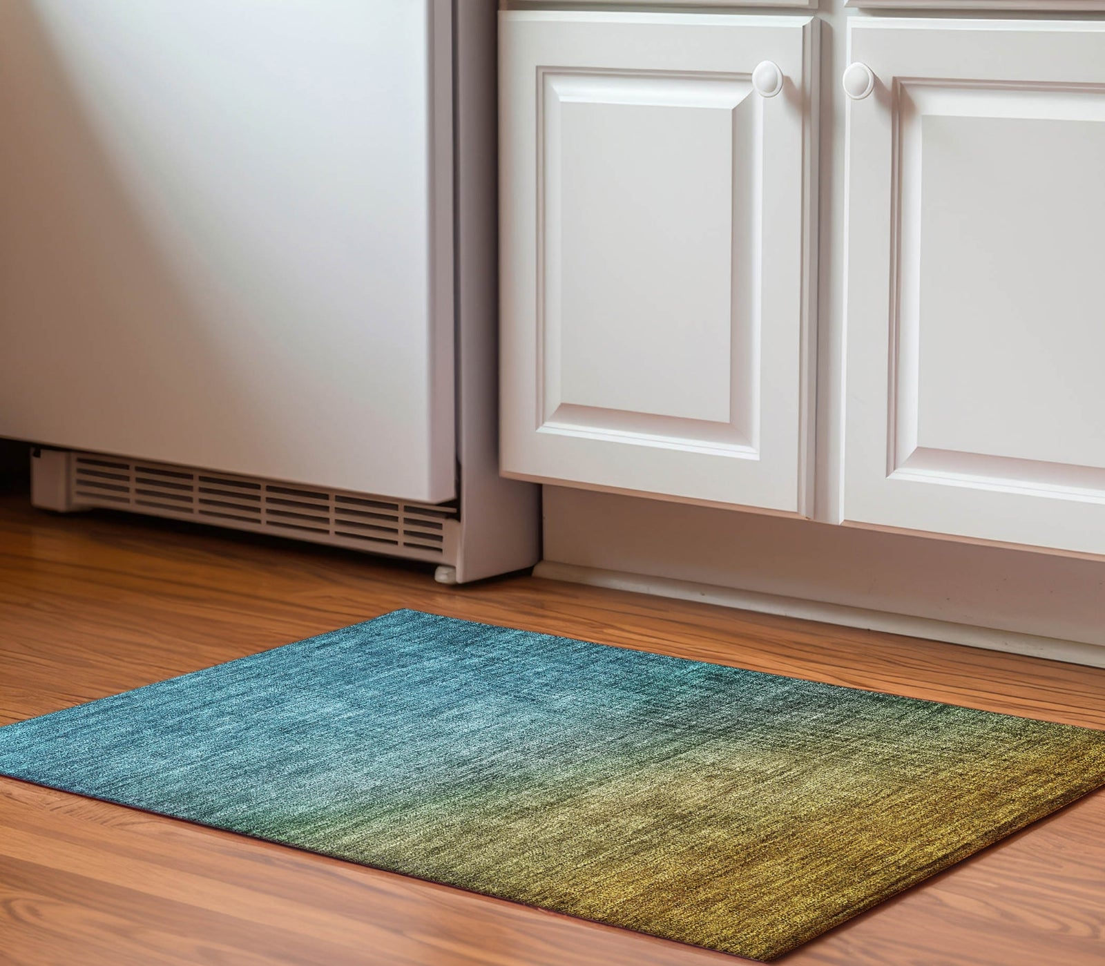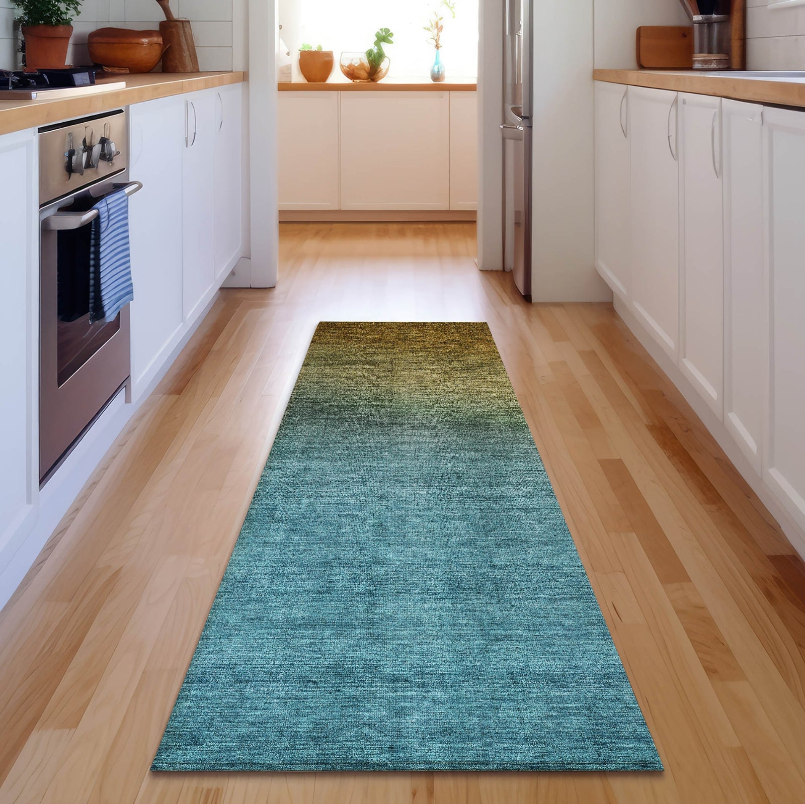 The ombre pattern on this rug showcases a gradual transition of colors, adding a refined and contemporary touch to your decor. The flowing hues create a sense of movement and depth, blending traditional and modern influences effortlessly. Its transitional style makes it a versatile piece that enhances any space with sophistication. Perfect for indoor and covered outdoor use, this rug features a thick, plush microfiber pile that offers soft comfort for every step. Its premium machine washable construction makes cleaning a breeze, while its family and pet-friendly design ensures it can handle the demands of everyday life. Add a touch of cozy elegance to your space with this versatile rug.