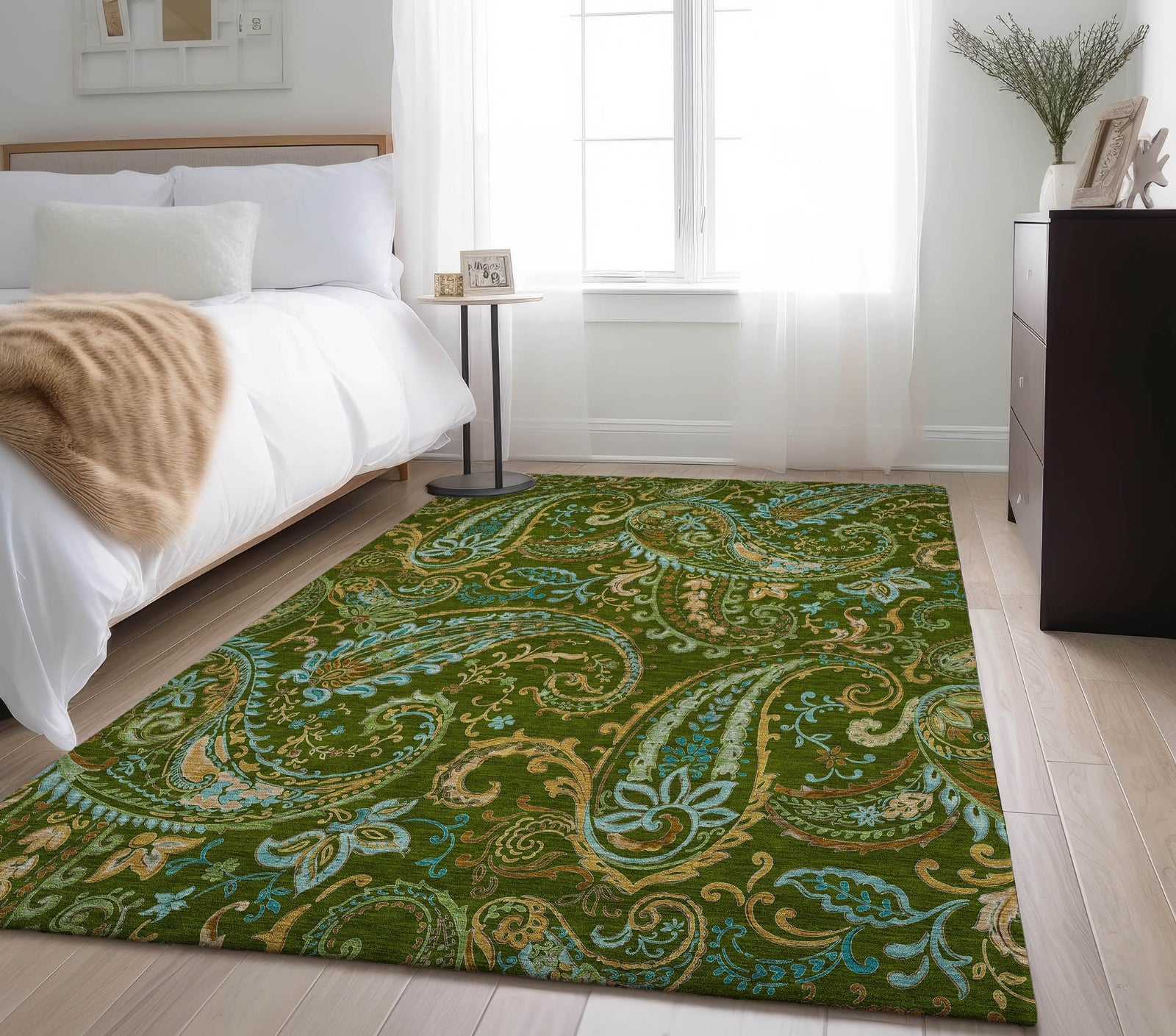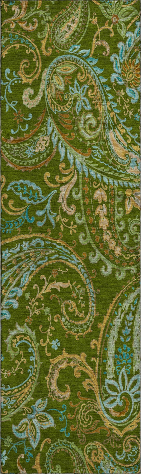 Piper Looms Mayfield Paisley AMF533 Green Machine Washable Area Rug