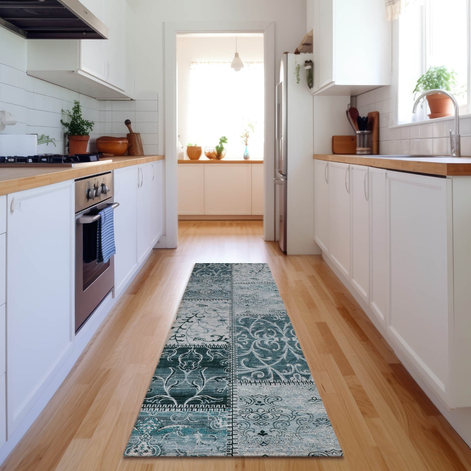 Piper Looms Mayfield Panel AMF566 Teal Machine Washable Area Rug