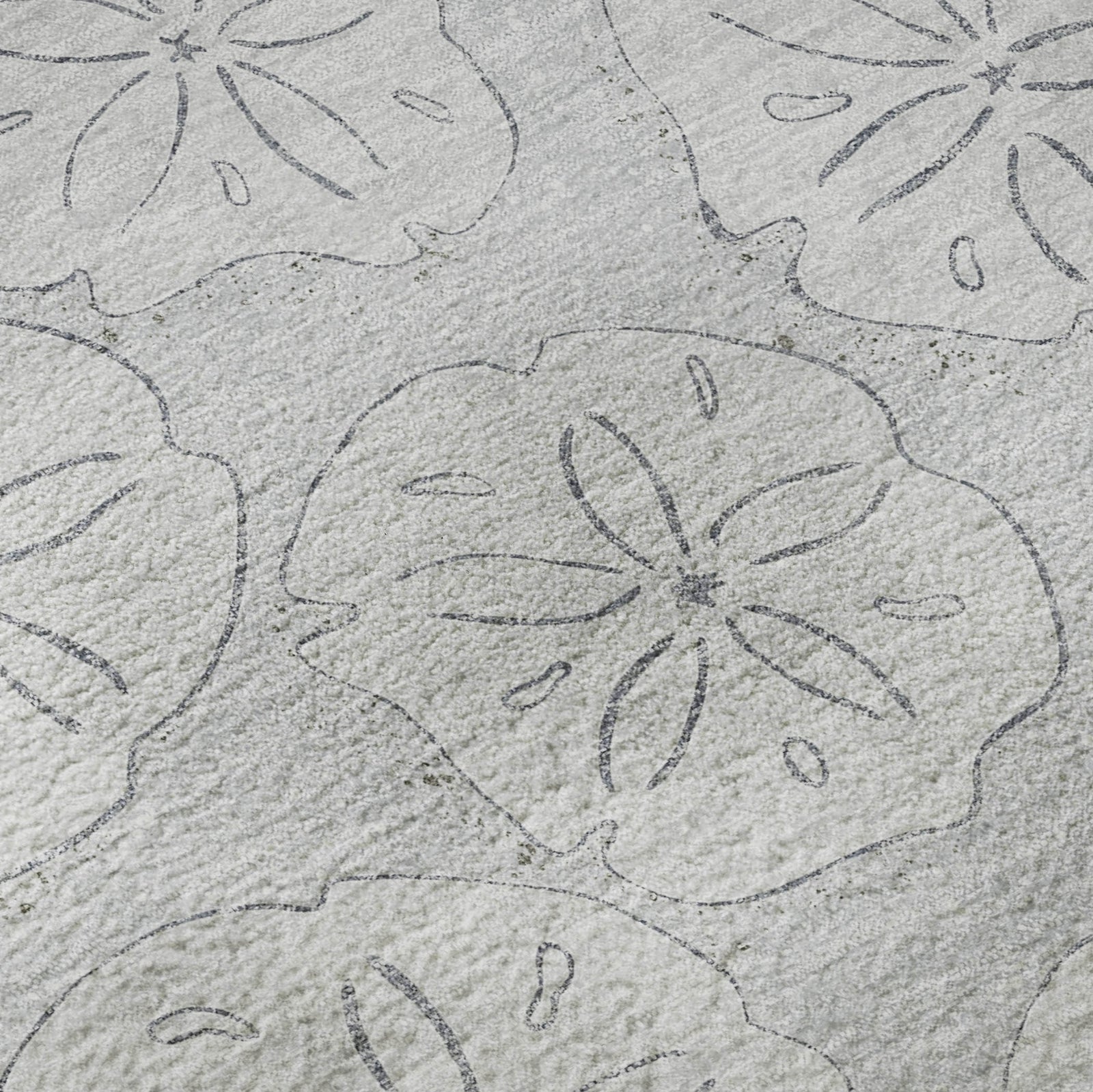 Capture the essence of the coast with a rug adorned with sanddollars in soft, tonal hues. This sanddollar design enhances the nautical charm of any space. Ideal for use indoors and in covered outdoor areas, it features a soft, thick, and plush microfiber pile. Plus, it's premium machine washable and family and pet-friendly, providing both practicality and coziness.