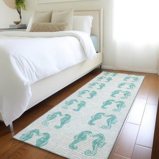 Piper Looms Mayfield Seahorses AMF194 Aqua Machine Washable Area Rug